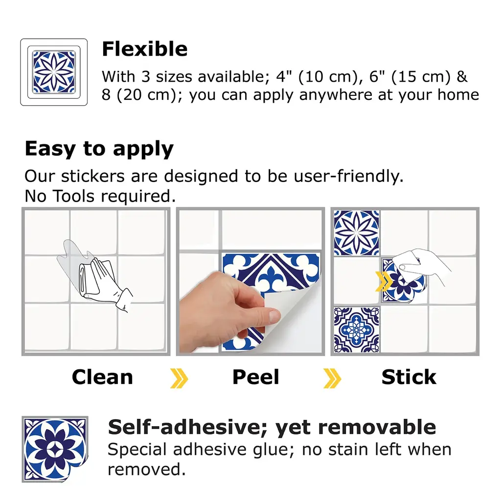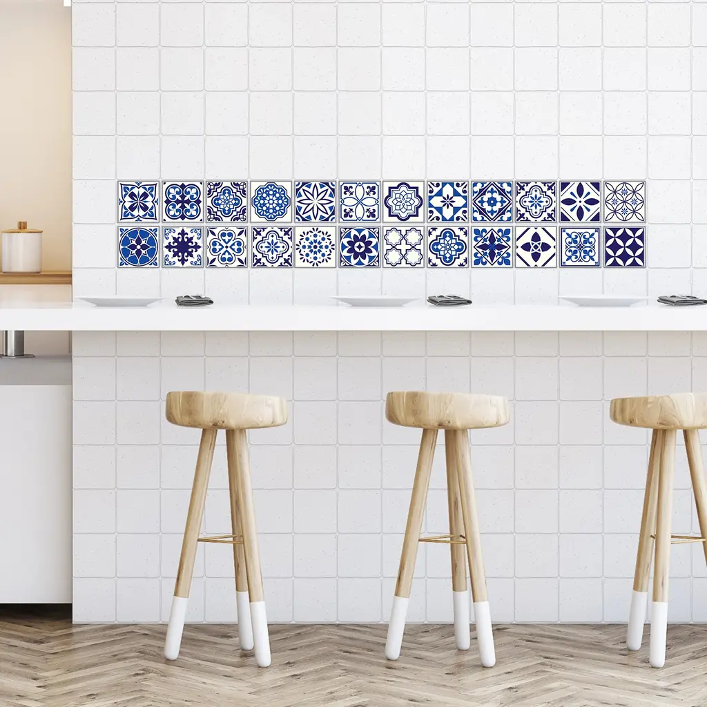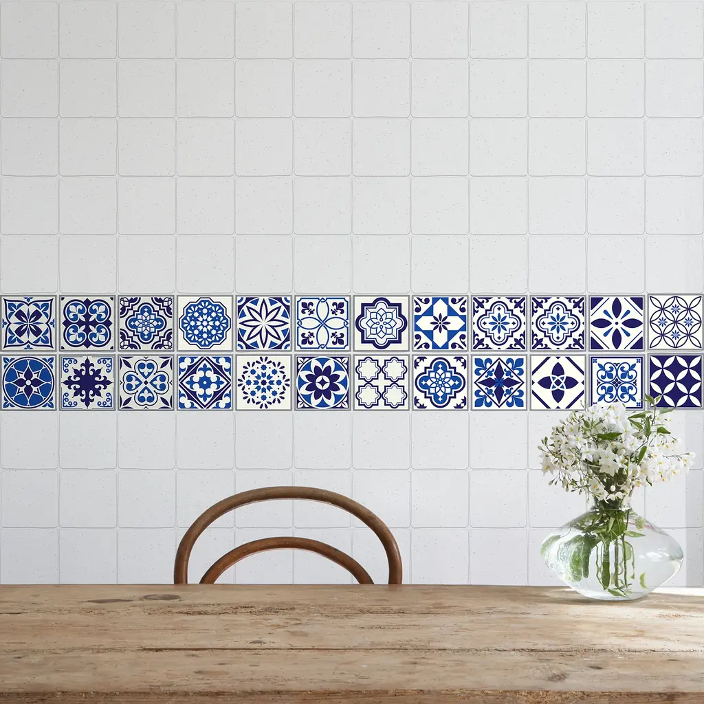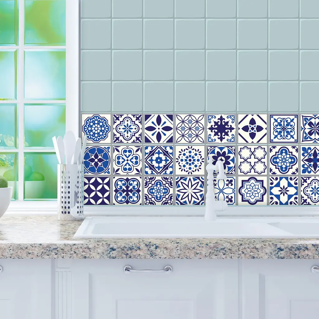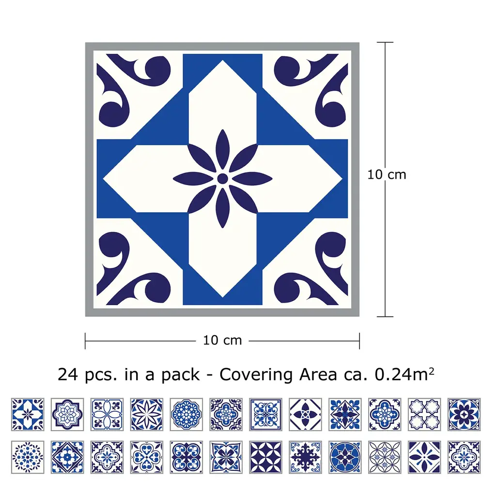 Walplus Spanish Moroccan Blue Tile Stickers Peel And Stick Wall Sticker Decal 24pcs 4" - 4 X 4 - Blue