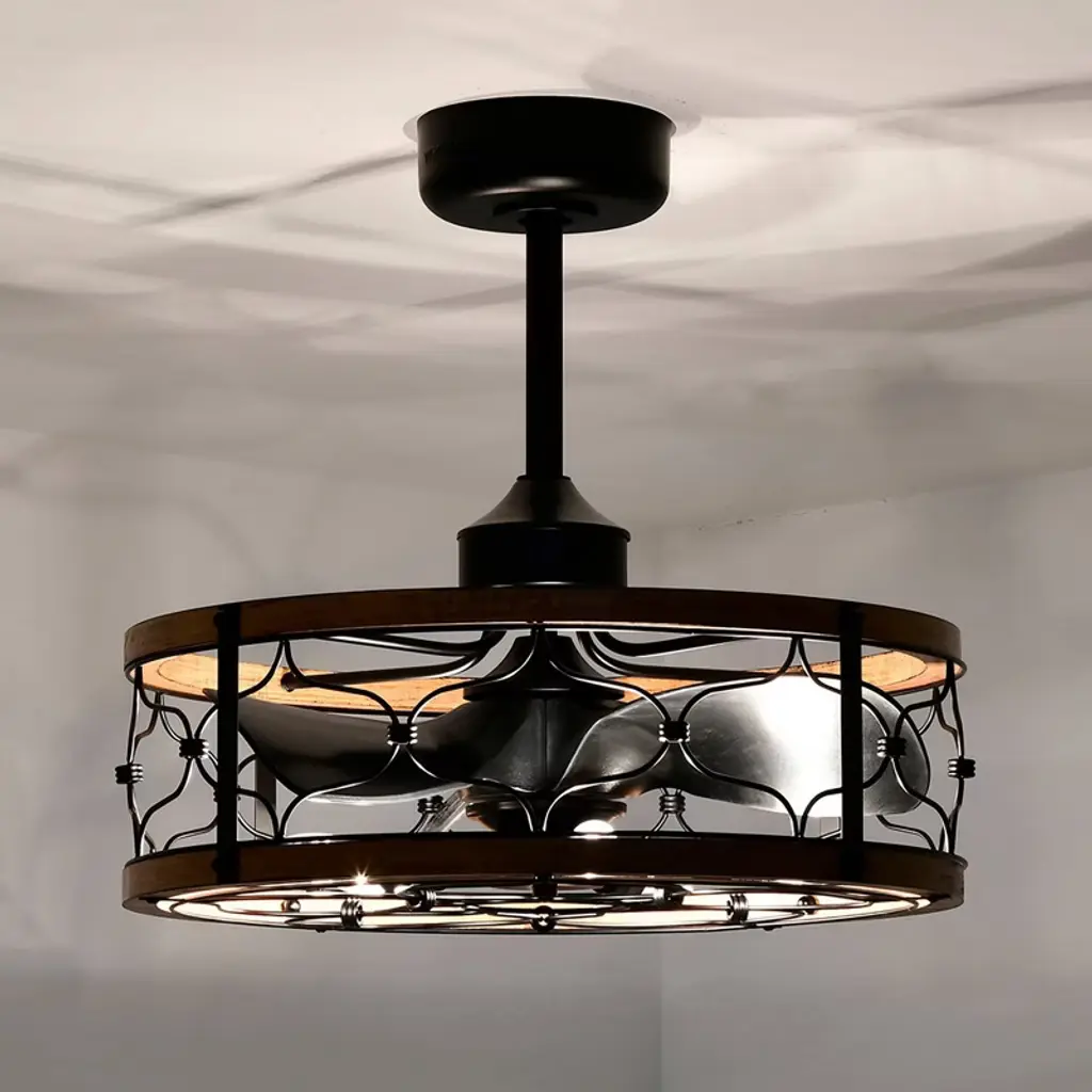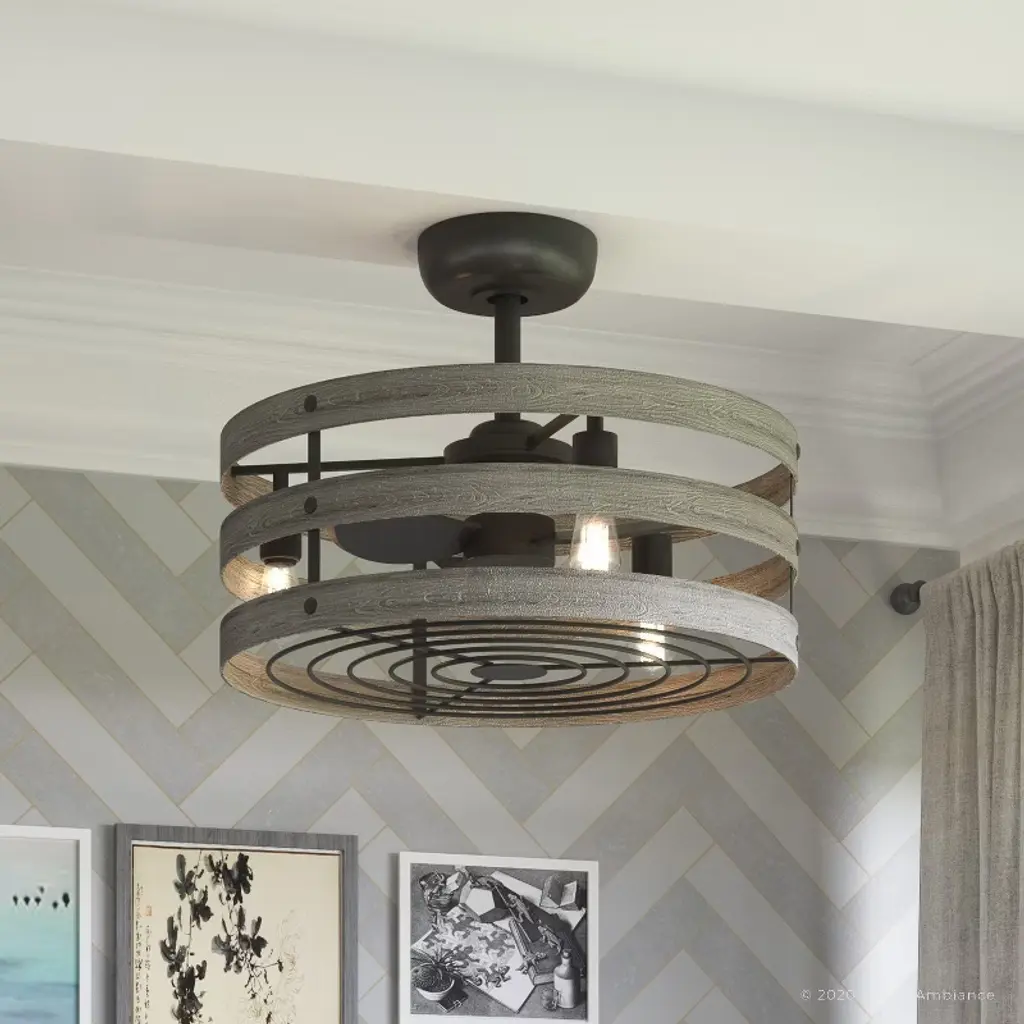 Warehouse Of Tiffany Cornelia 24" Farmhouse Matte Black Finish Fandelier With Remote Control