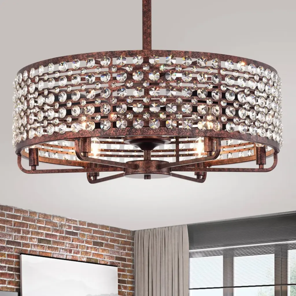 Warehouse Of Tiffany Juliet Rustic Bronze 28" 6-light Metal And Crystal Drum Shade Fan With Remote Control
