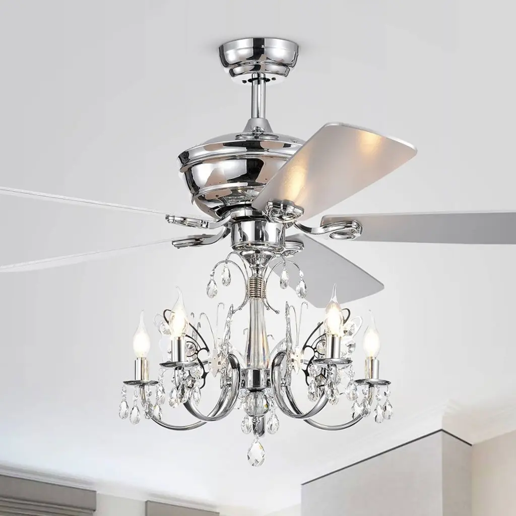 Warehouse Of Tiffany Silver Orchid Finlayson 52" 5-light Chrome Lighted Fan Two-color Blades Reversible With Remote Control