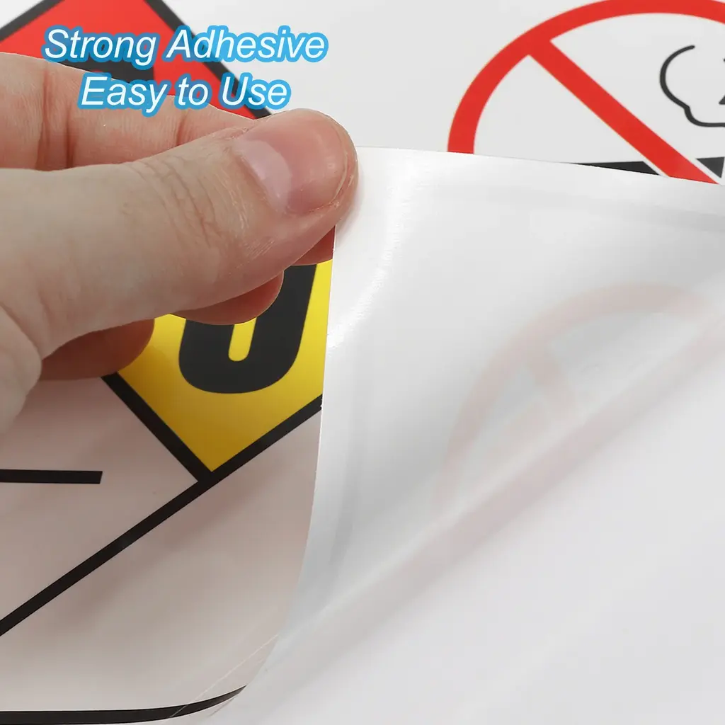 No smoking signs are often used in public places or offices to warn and remind people that smoking is not allowed in the area.Specification Material: PaperSize: 25.4x17.8cm / 10x7inch (L*W)Package List: 1 Set x No smoking signs (each roll has 3 sheets)Advantage1. The labels have a unique appearance that gives them a professional feel. Its texture and brightness can increase product appeal and recognition, making it suitable for applications requiring quality and aesthetics.2. Brightly colored, eye-catching signs get people noticed and help remind people to pay attention.Instruction 1. Before applying, make sure the surface to which you will apply is thoroughly clean and dry.2. Determine the placement of the sticker in the appropriate location.3. Carefully apply the sticker to a clean surface.4. If air bubbles appear, they can be removed with a scraper or similar tool.NOTE: Please confirm the size before placing an order.