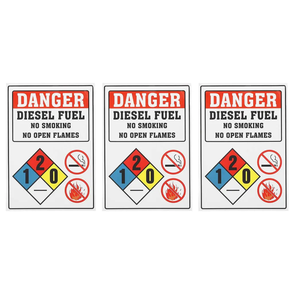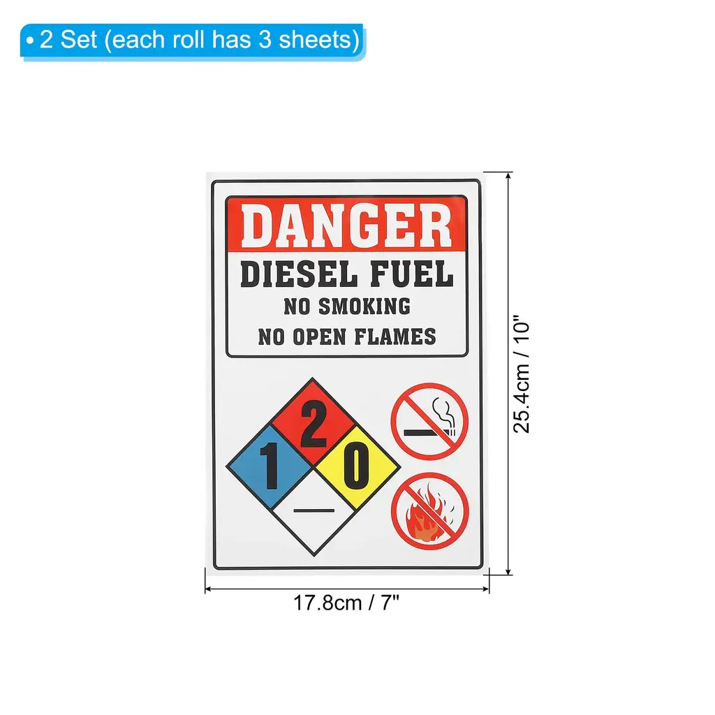 Warning Sign 7X10" Adhesive Labels Danger Diesel Fuel Stickers - Multicolor - 3 Sheet