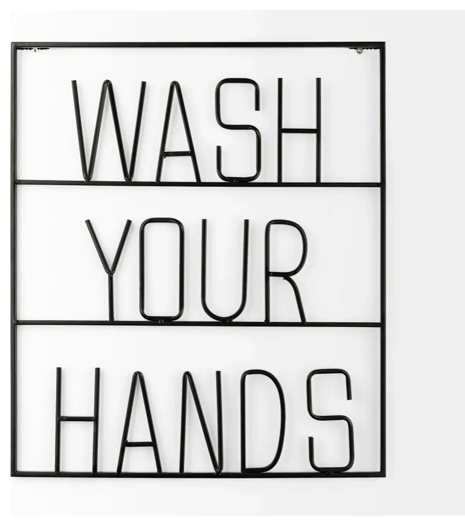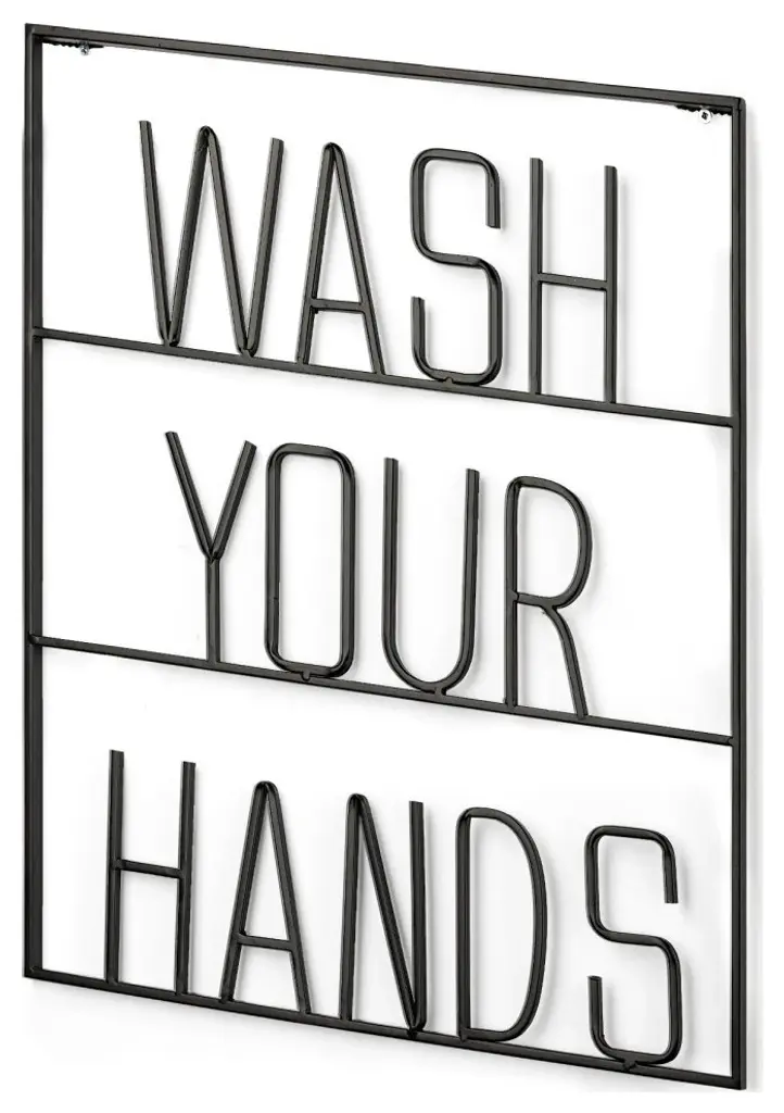 Create inspiring walls with this metal, cut-out quote.19.9" High Wall SignA decorative piece of wall art measuring 17.1"L x 0.5"W x 19.9"H. Metal ConstructionThis typography wall sign features cut-out, metal lettering with the words "œWASH YOUR HANDS"� "“ a fun way to remember good hygiene. Black FinishThis piece has a simple, matte black finish that let"™s the words do all the talking. InspirationalEverybody loves a beautiful quote! Memorable, motivating and welcoming, they serve as great pick-me-ups when incorporated into interiors. Versatile StyleIts simple style works across a number of design styles, but pairs especially well with farmhouse homes that are warm and approachable.
