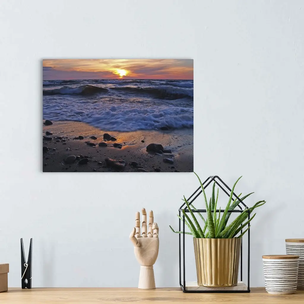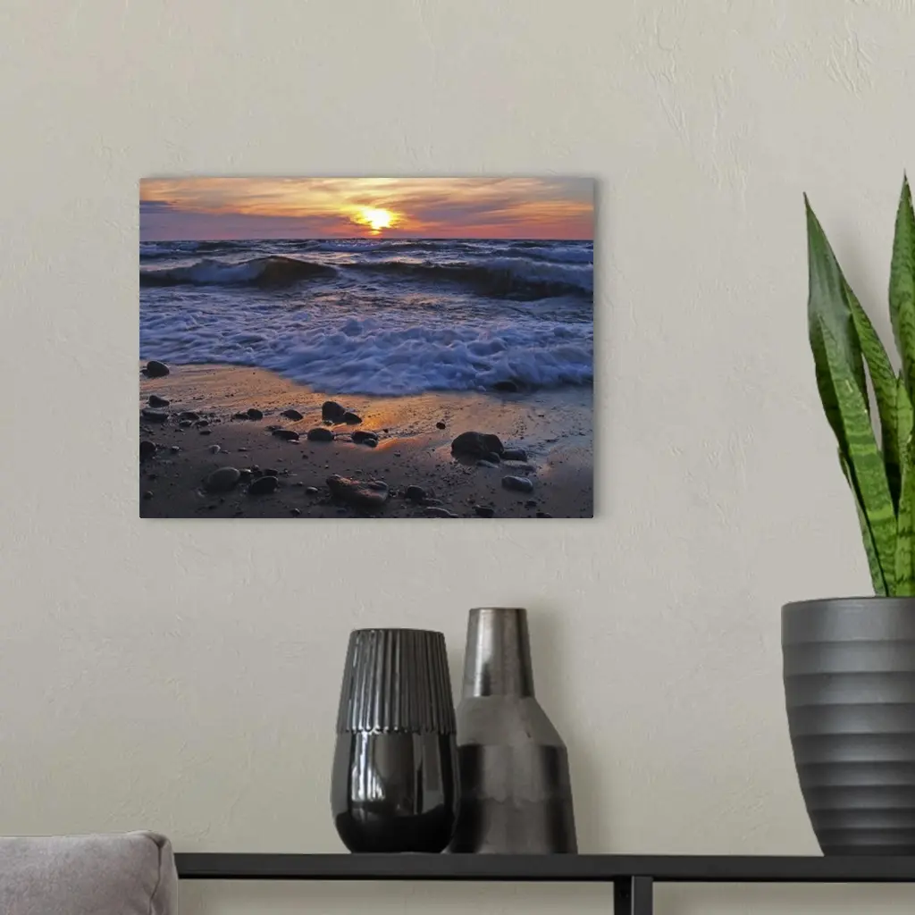 Wave on wave on the shore of Lake Superior at sunset at Painted Rocks National Seashore