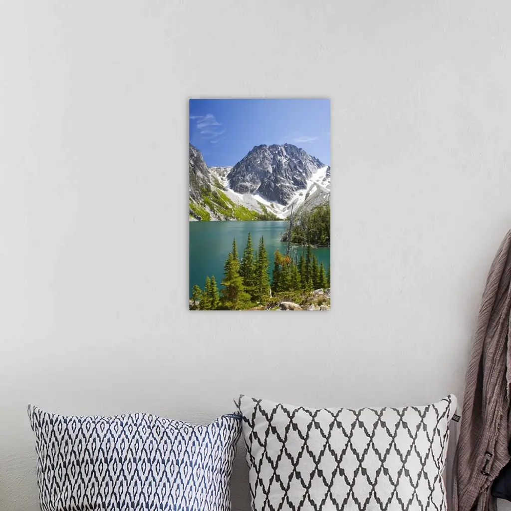 Washington, Alpine Lakes Wilderness, Colchuck Lake, with Dragontail Peak and Colchuck Peak.