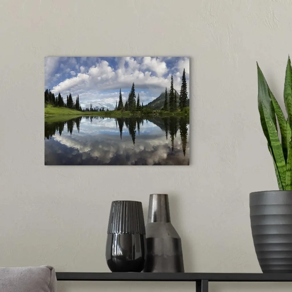 USA, Washington State, Mt. Rainier National Park. Mt. Rainier and clouds reflecting in Upper Tipsoo Lake.
