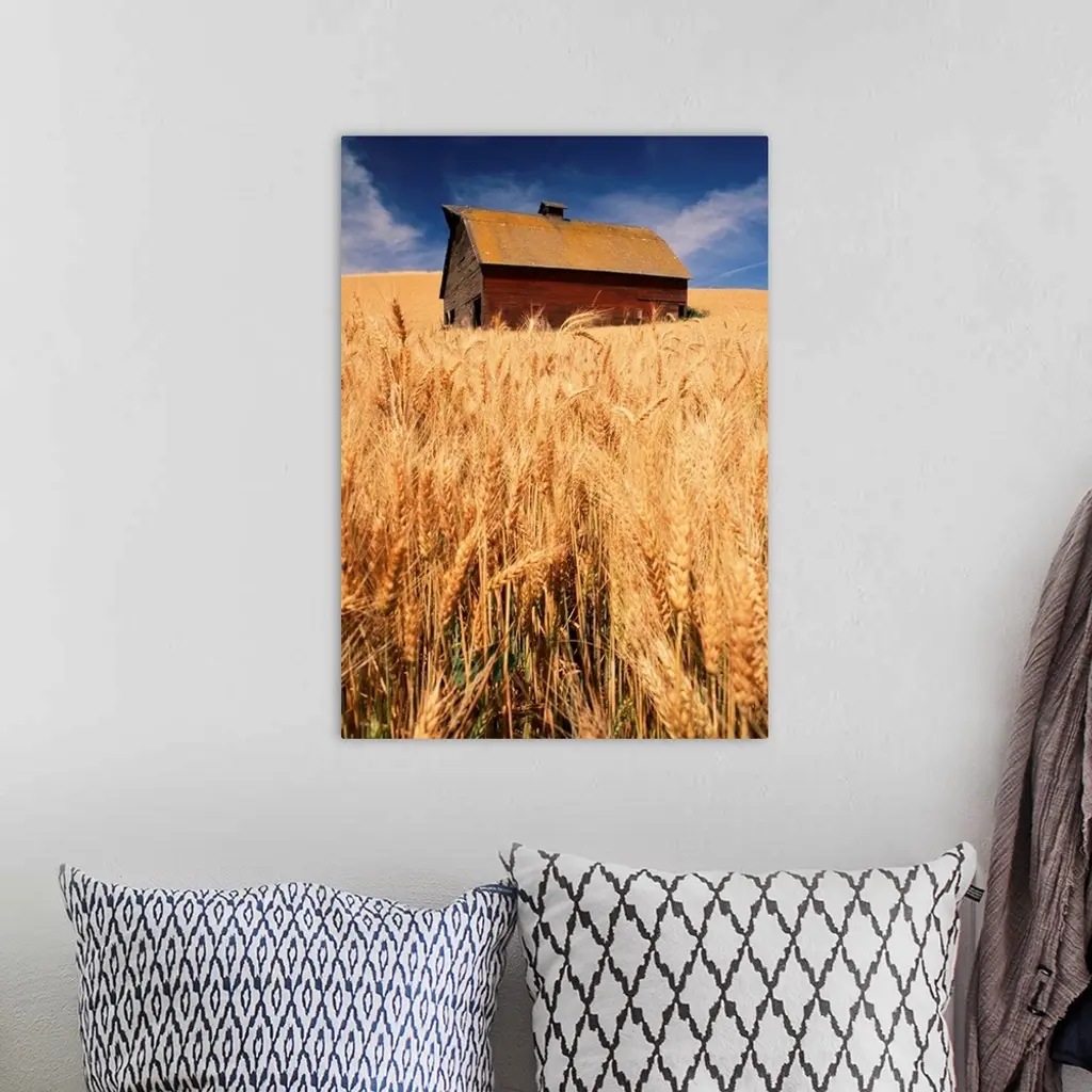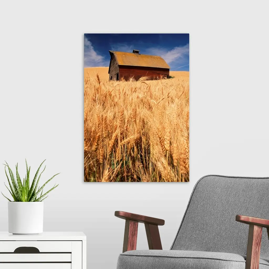 USA, Washington State, Palouse, View of barn surrounded with wheatfield.