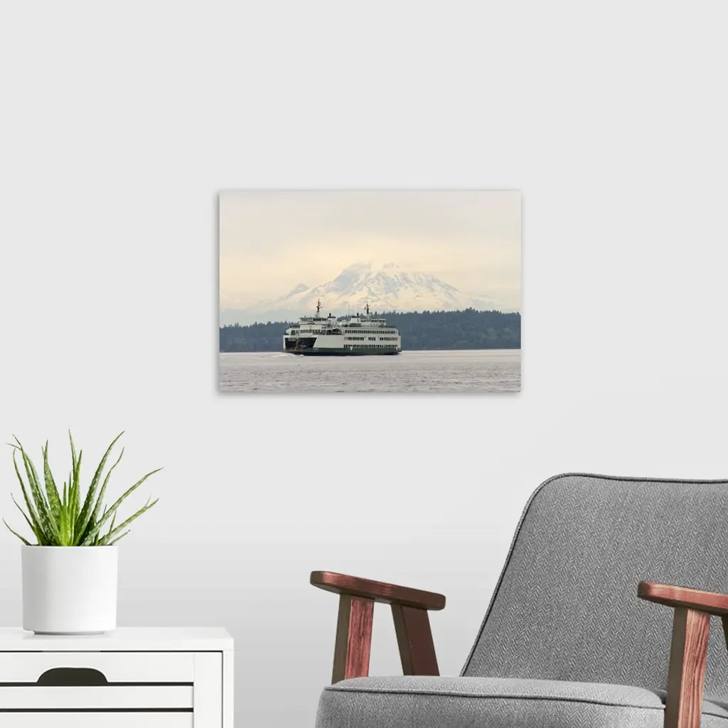 Washington State, Puget Sound. Seattle-Bremerton Ferry With Mt. Rainier
