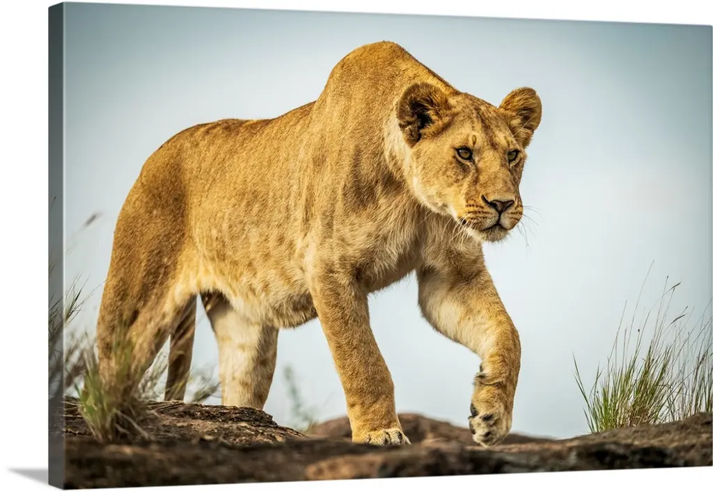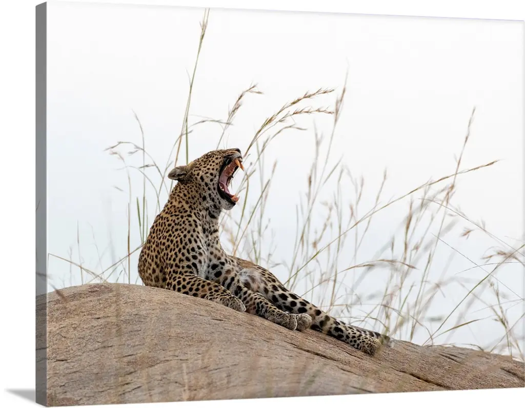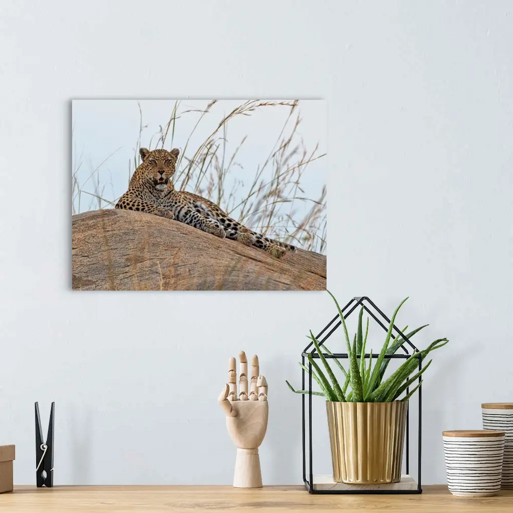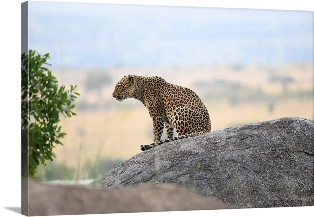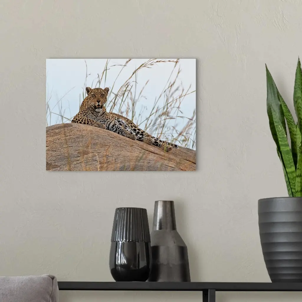 A leopard on a rock watches intently for a next meal. Tanzania, Africa.