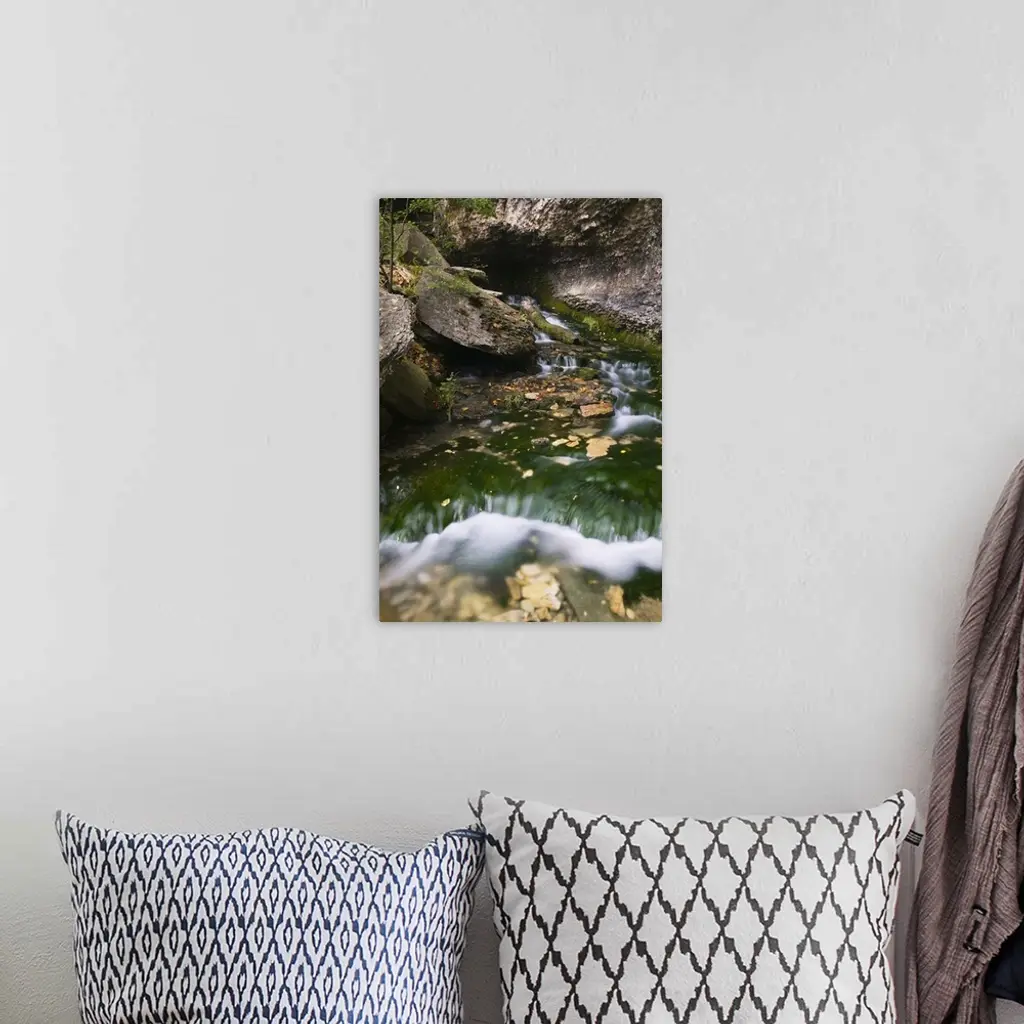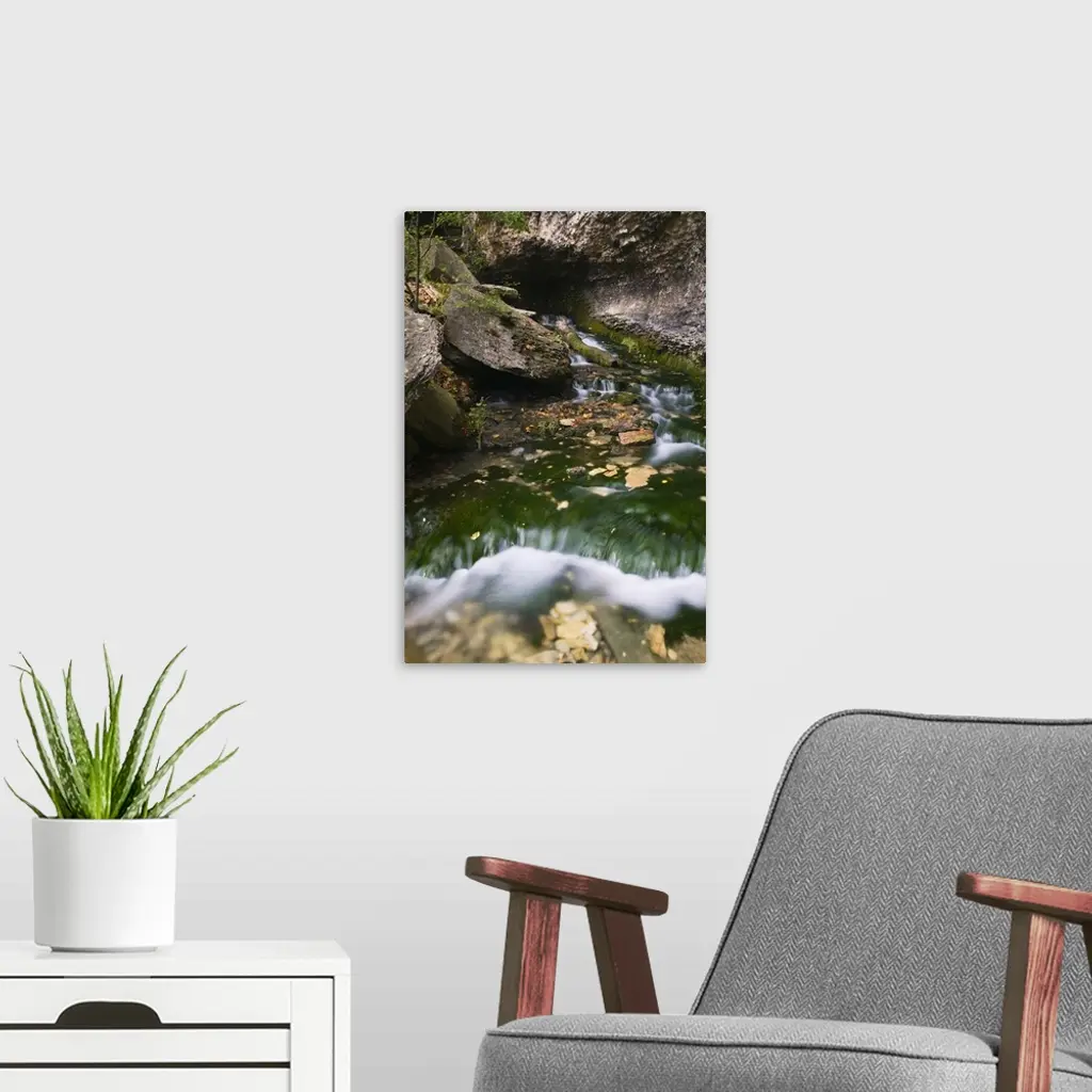 Water cascading over rocks, Dunnings Spring, Dunnings Spring City Park, Iowa wall art for home and office decor. Discover canvas art prints, photos, mural, big canvas art and framed wall art in GreatBigCanvas.com's varied collections.