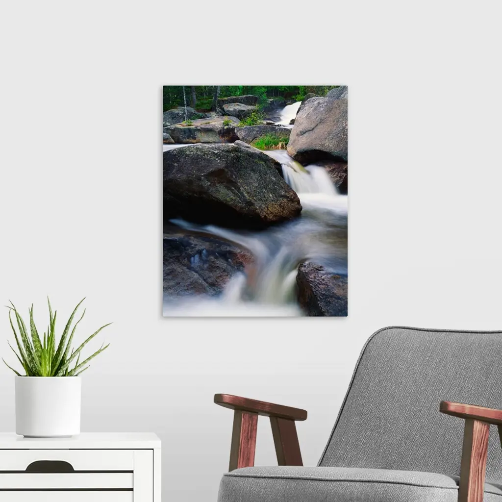 Water cascading over rocks, Nesowadnehunk Stream, Baxter State Park, Maine wall art for home and office decor. Discover canvas art prints, photos, mural, big canvas art and framed wall art in GreatBigCanvas.com's varied collections.
