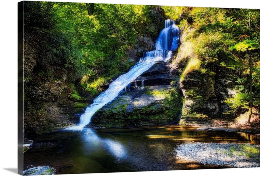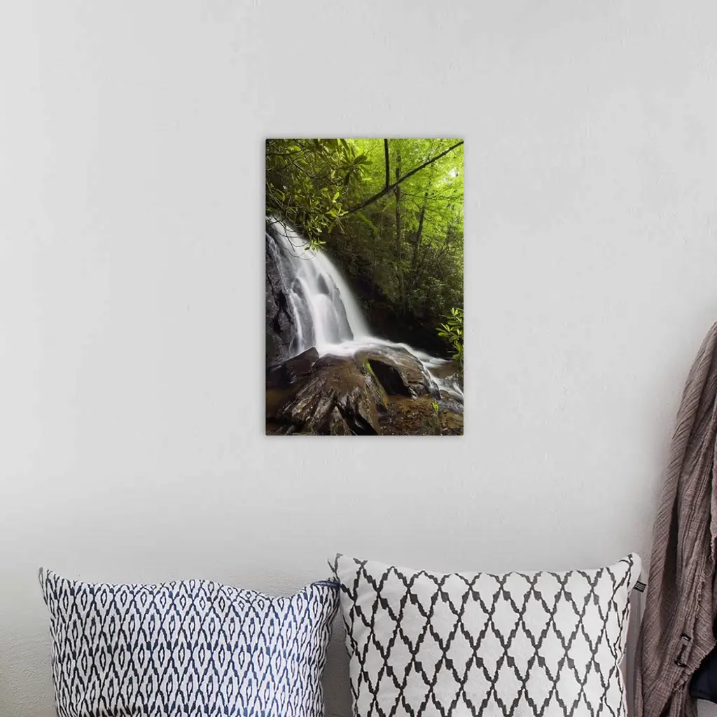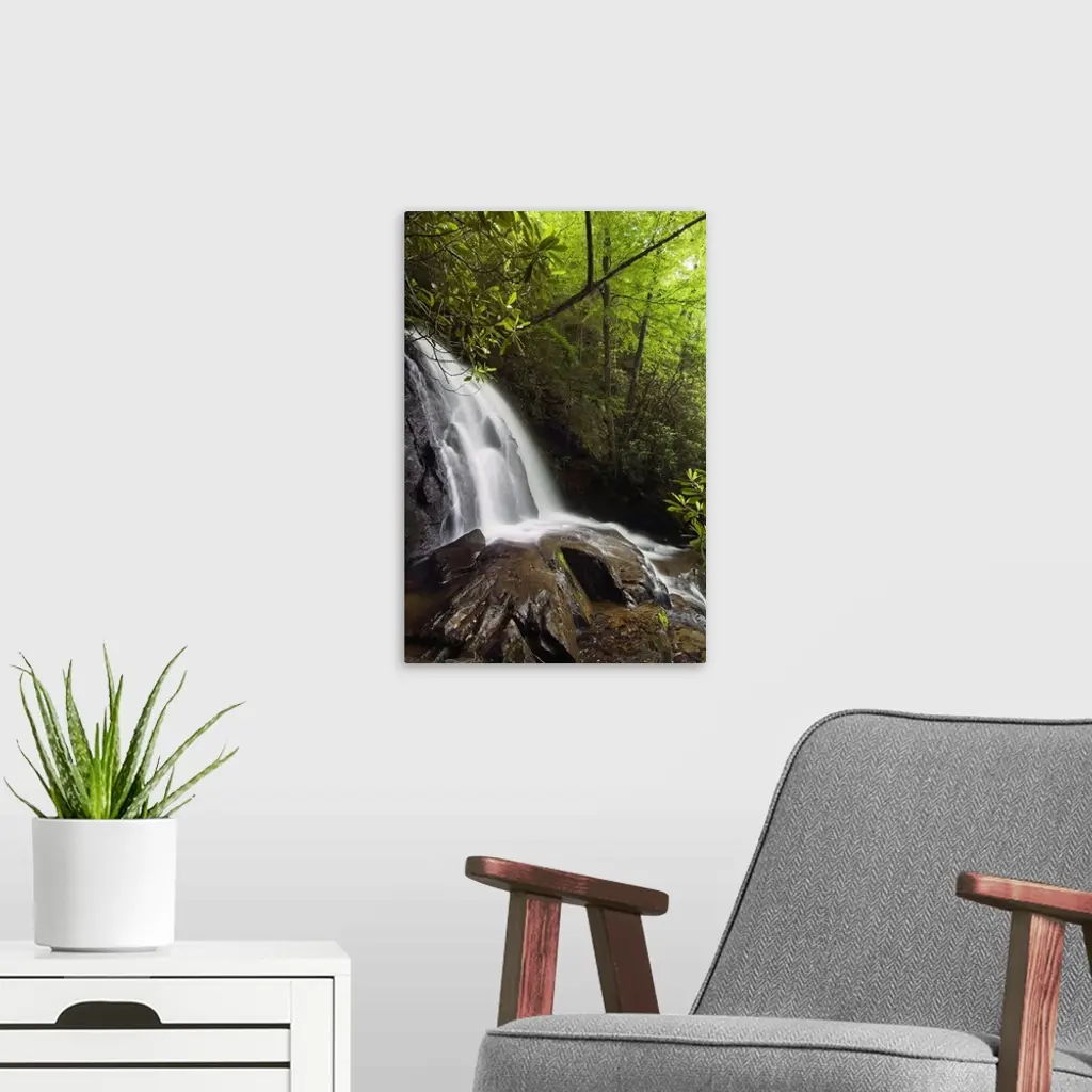 Water Cascading Over Rocky Cliffs, Laurel Creek Falls, Great Smoky Mountains National Park, Tennessee