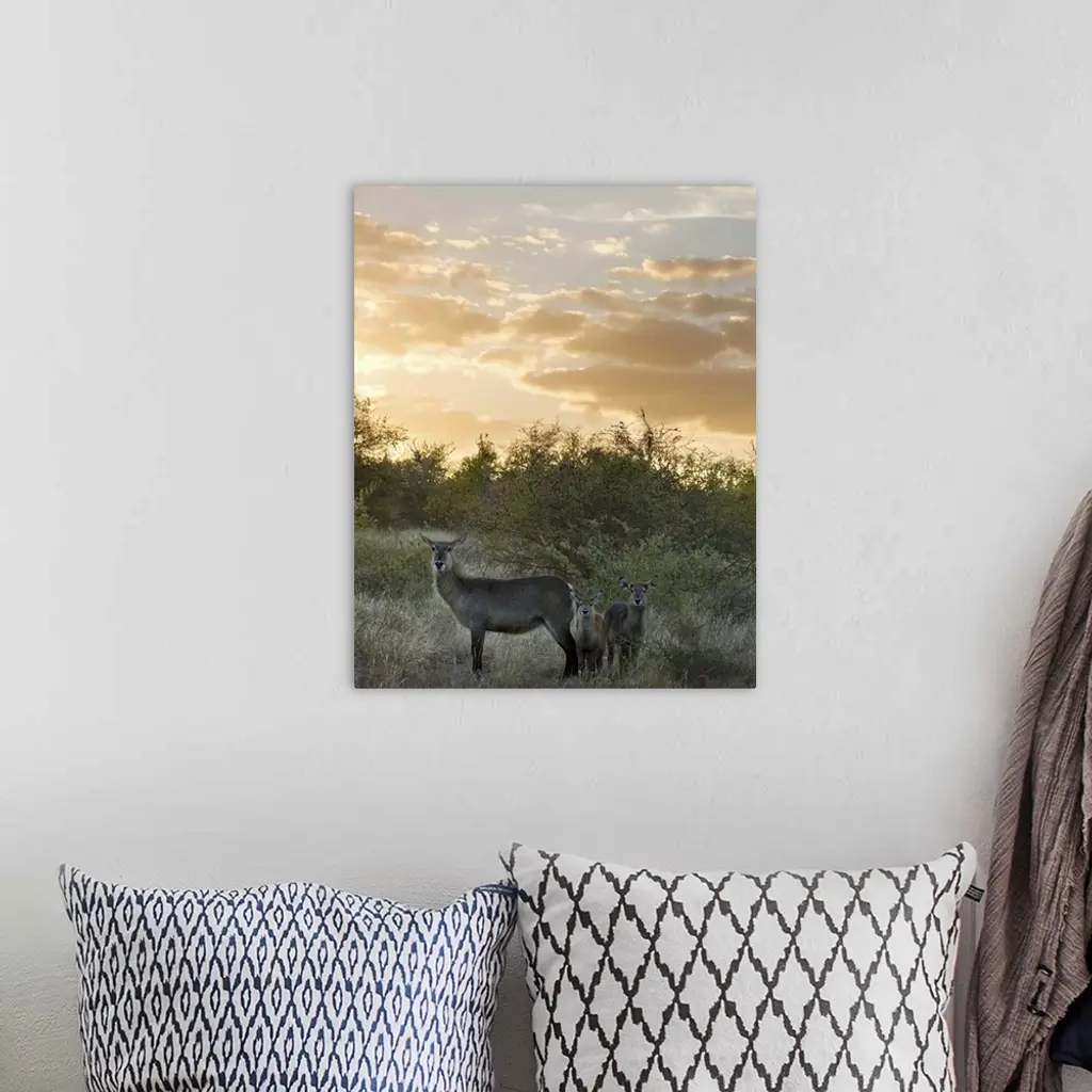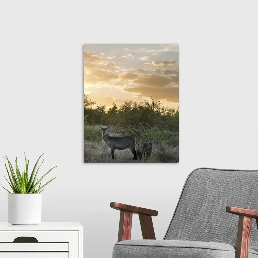 Waterbuck (Kobus ellipsiprymnus) mother and calf, Kruger National Park, South Africa wall art for home and office decor. Discover canvas art prints, photos, mural, big canvas art and framed wall art in GreatBigCanvas.com's varied collections.