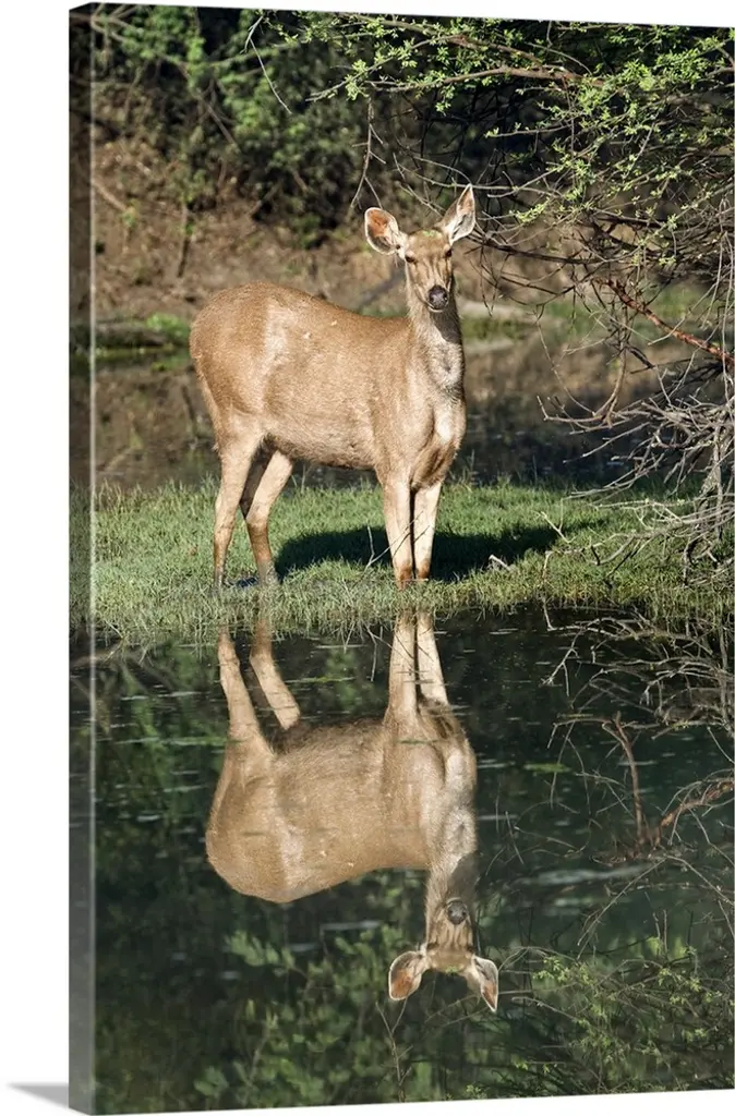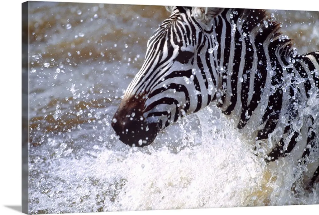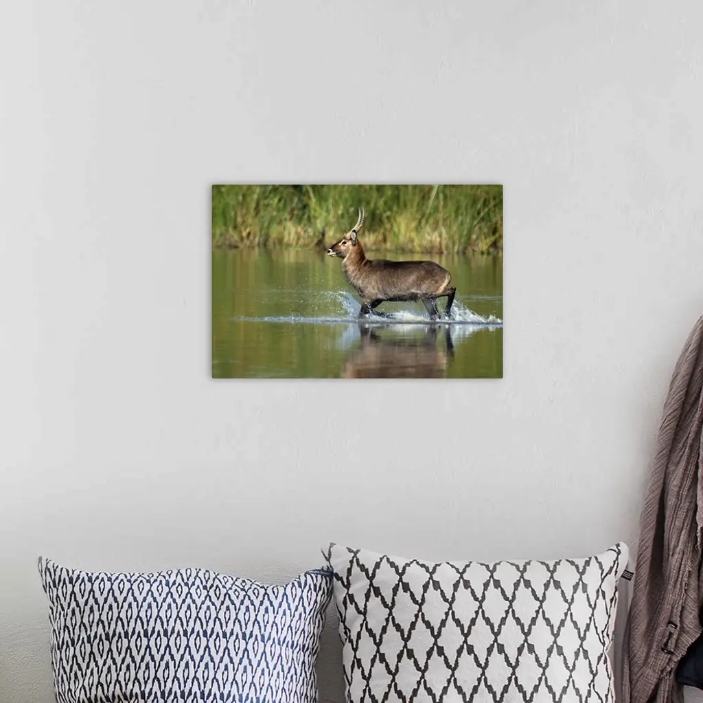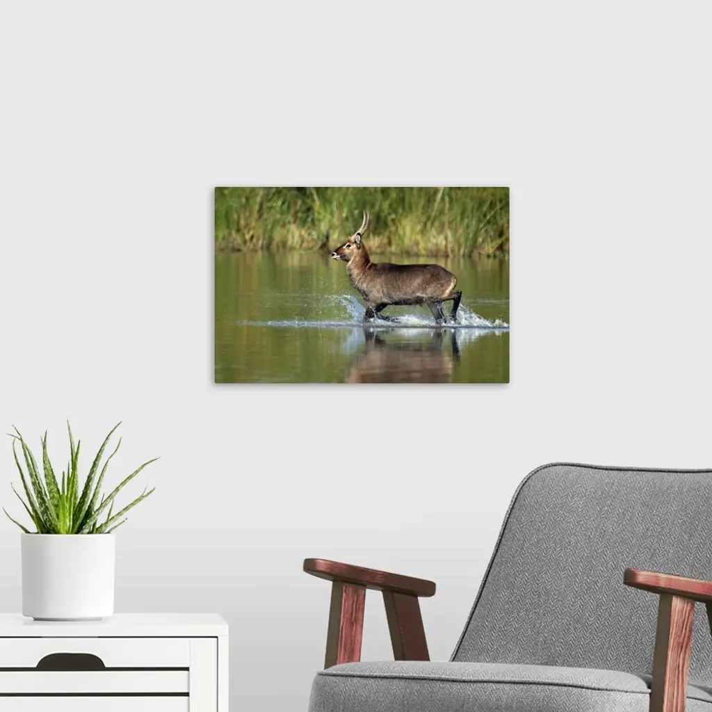 Waterbuck running in water wall art for home and office decor. Discover canvas art prints, photos, mural, big canvas art and framed wall art in GreatBigCanvas.com's varied collections.