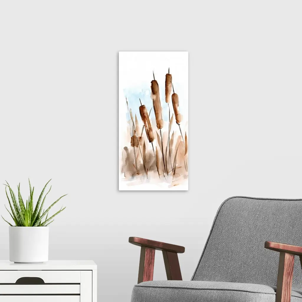 Watercolor Cattail Study II wall art for home and office decor. Discover canvas art prints, photos, mural, big canvas art and framed wall art in GreatBigCanvas.com's varied collections.