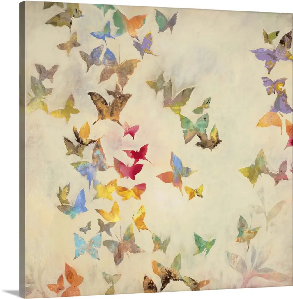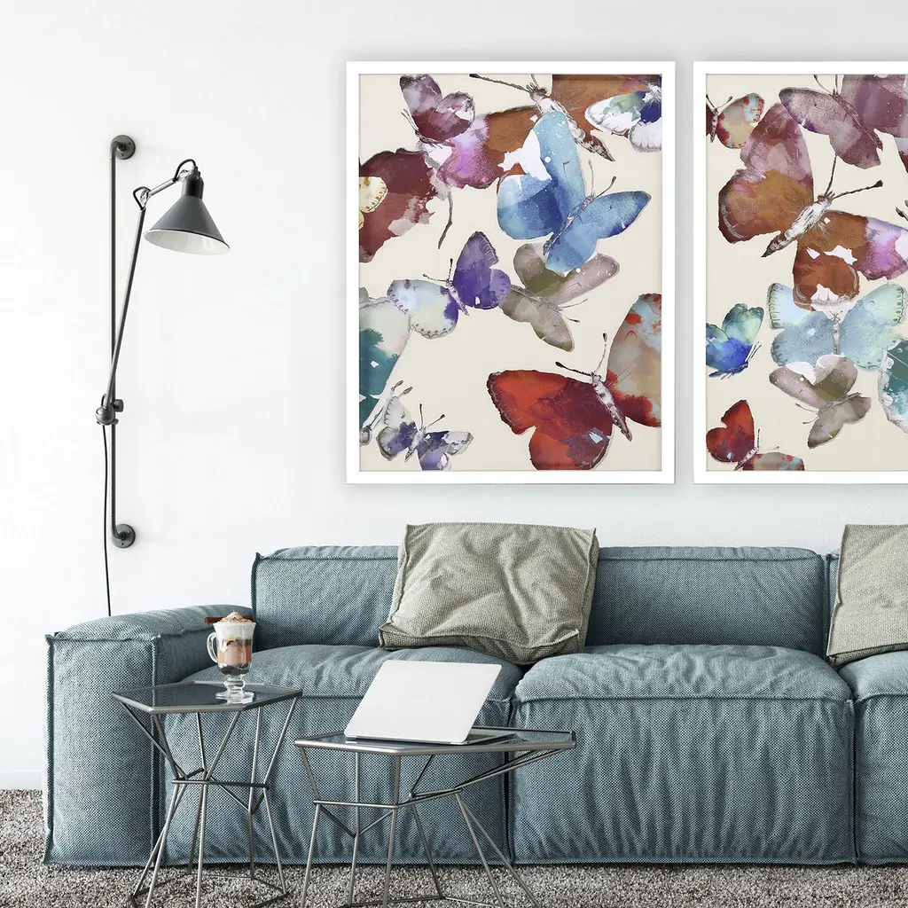 Watercolor Fluttering Red And Blue And Multi Framed Art, The Studio