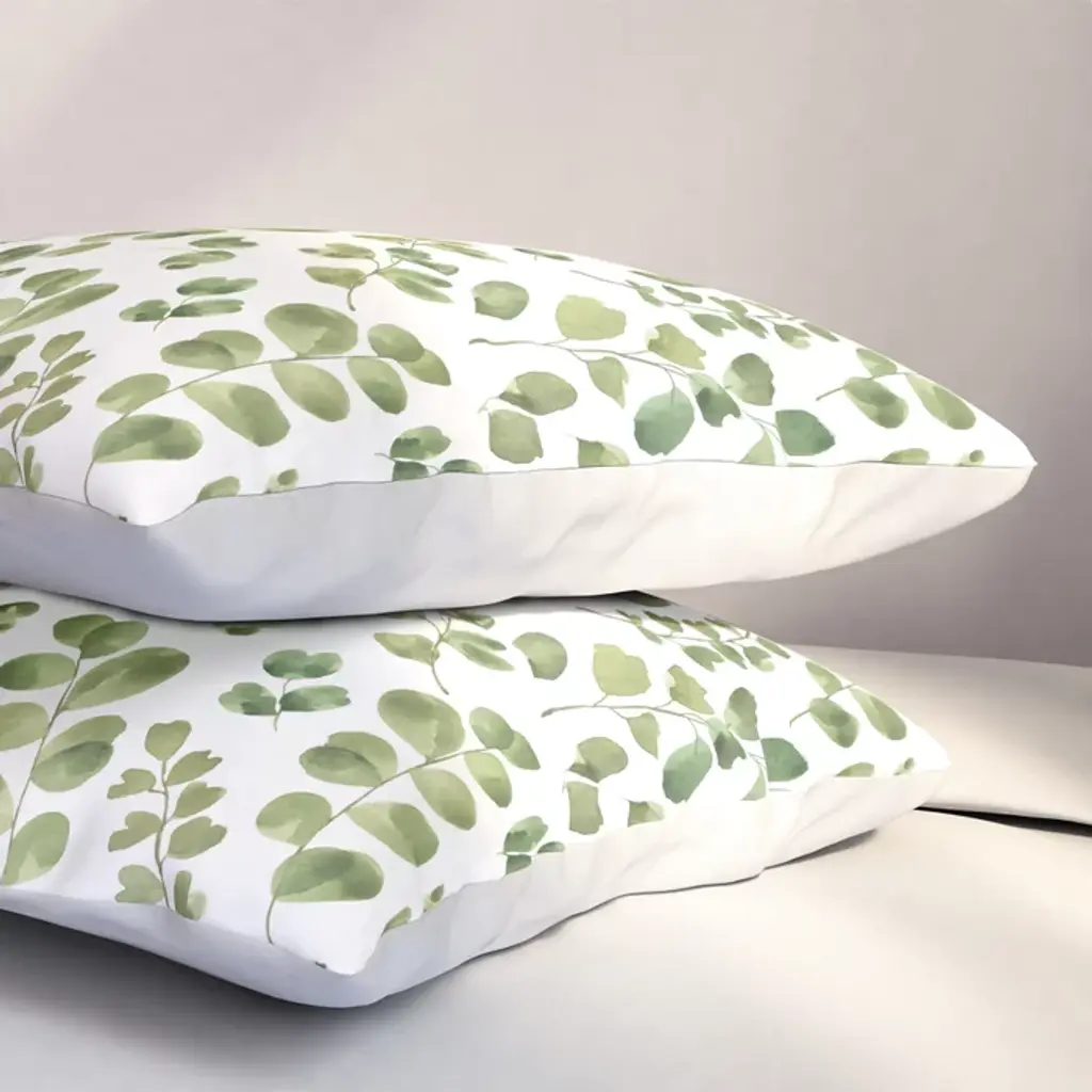 Watercolor Green Botanical Leaves Hand Painted Pattern Pillow Sham