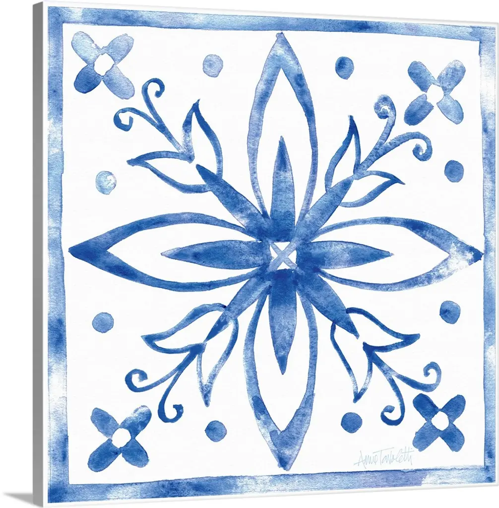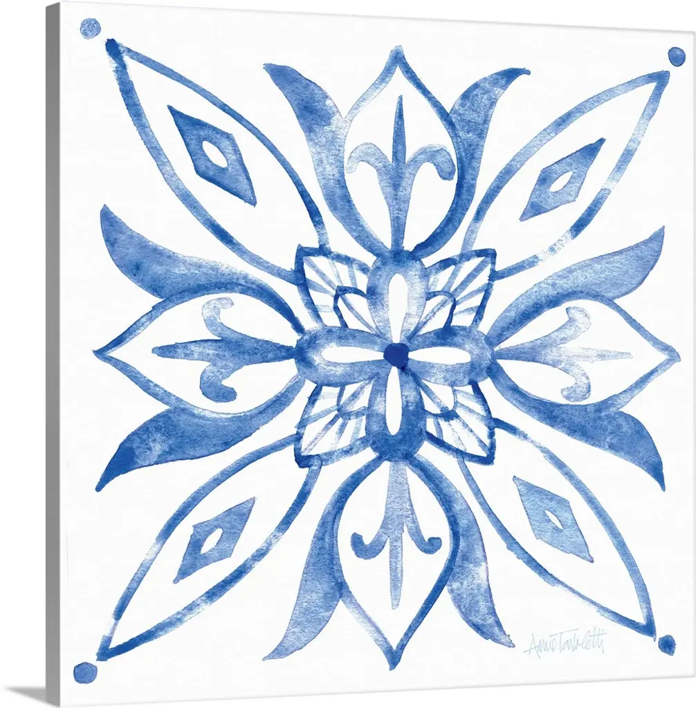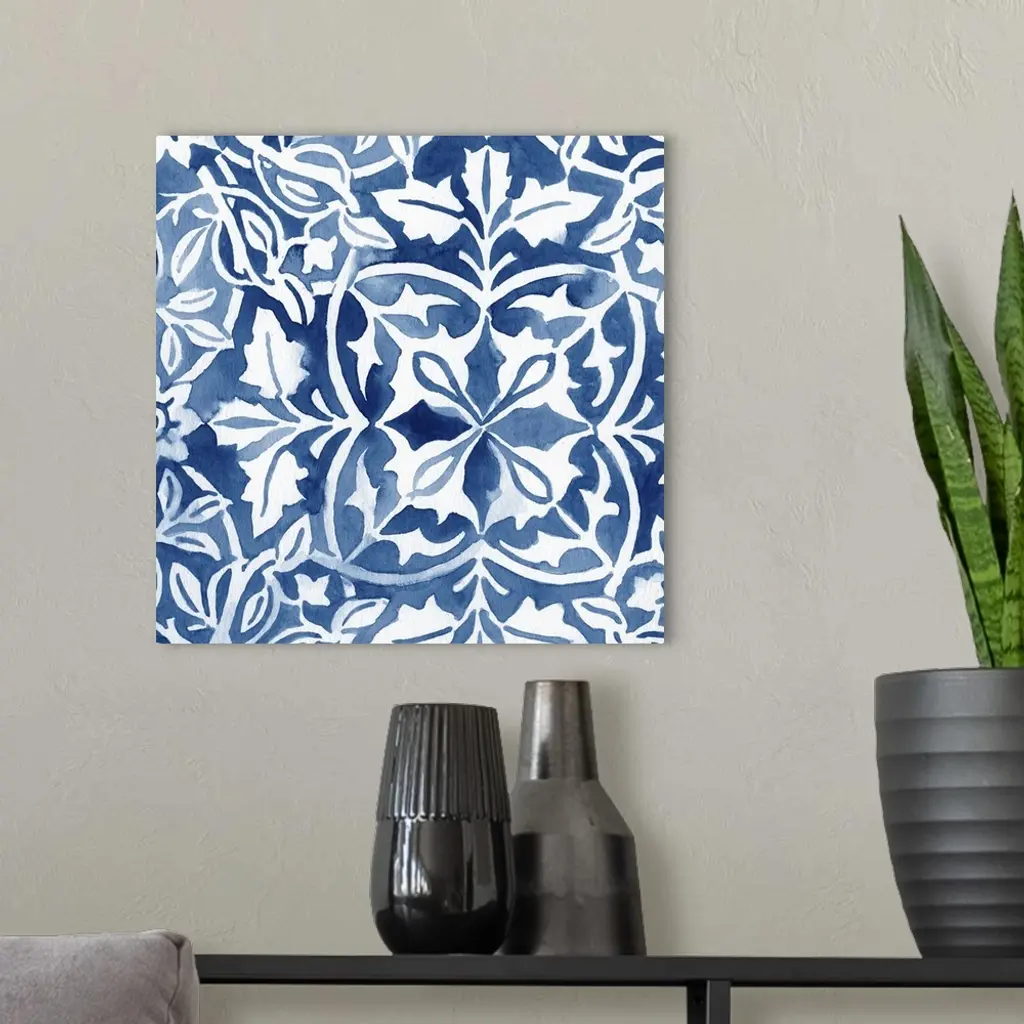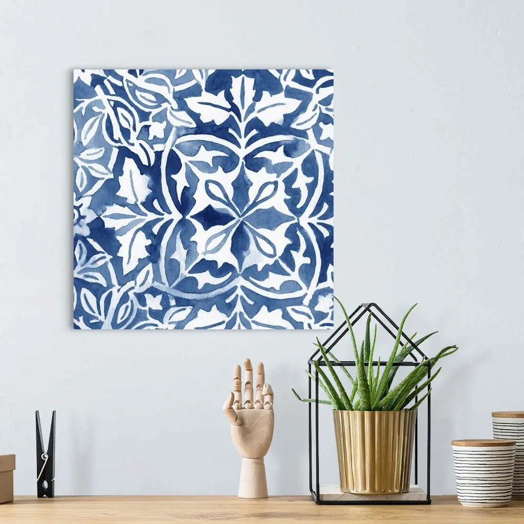Elaborate indigo blue patterns in watercolor.