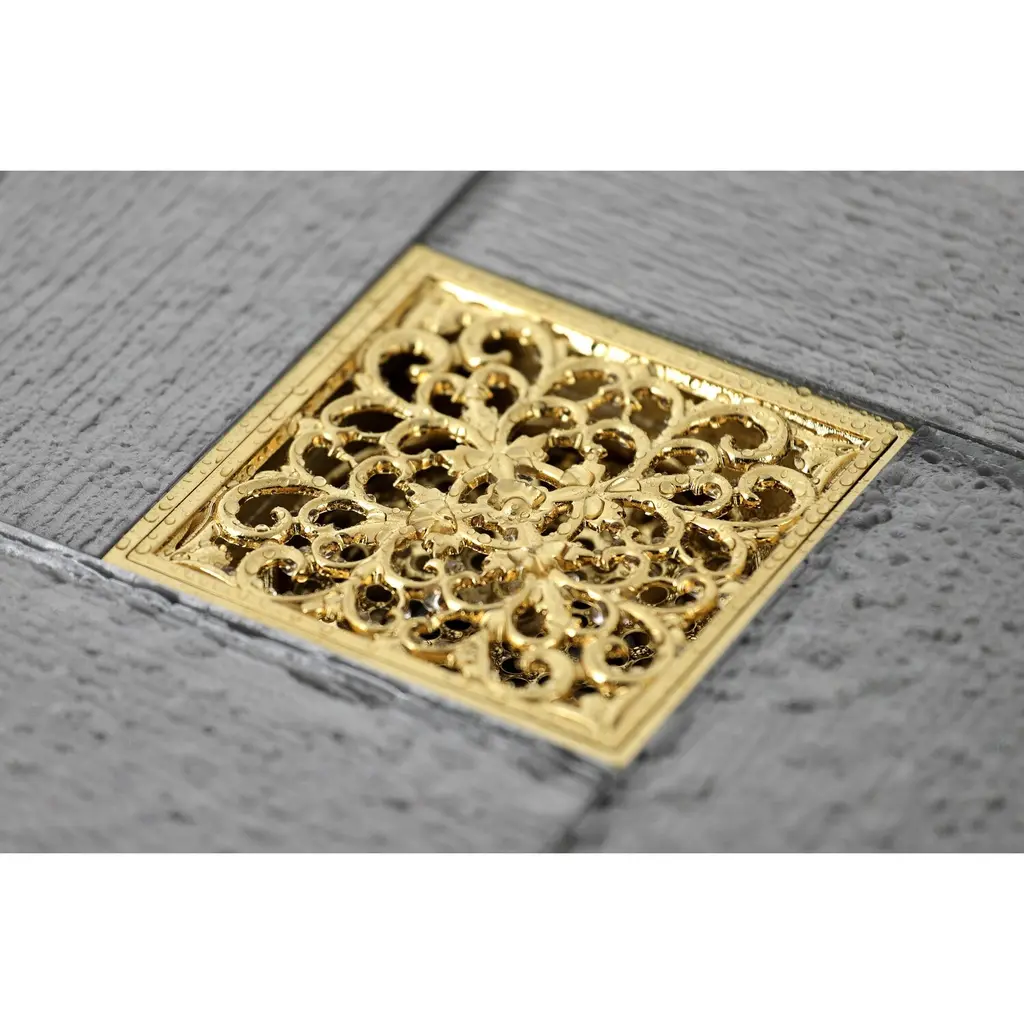 The Watercourse collection features an array of shower drains in multiple finishes. From simple, non-obtrusive grid-cut floor drains to ornate embossed floral patterns the Watercourse collection offers a range of selections. Watercourse drains install a variety of ways and fit a range of both square and circular drain openings. Please see each drain for its detailed specifications and compatibility. The Scroll drain flange in the Watercourse collection fits a 4" x 4" square and features an ornate scrollwork design hair catcher to prevent foreign objects entering your drain. The design comes in Chrome, Polished Brass, Antique Brass, Oil Rubbed Bronze, Polished Nickel, Brushed Brass, Brushed Nickel and Matte Black to match nearly any fixture and any design.FeaturesSolid brass constructionSquare shower drainSuitable for 2" drain pipeOverall dimension: (L)3-15/16" x (W)3-15/16" x (H)3-1/4"2-11 1/2 NPSM connectionFloor installationIncludes cover, dome grid, and drain bodyIncludes integral grid to trap hair and prevent cloggingProp 65 disclaimerWARNING: This product can expose you to chemicals, including lead which is known to the State of California to cause cancer or birth defects or other reproductive harm, for more information, go to www.p65warnings.ca.gov