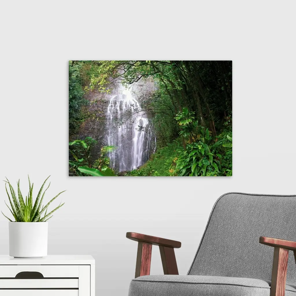 Waterfall along Hana coast, Maui, Hawaii wall art for home and office decor. Discover canvas art prints, photos, mural, big canvas art and framed wall art in GreatBigCanvas.com's varied collections.