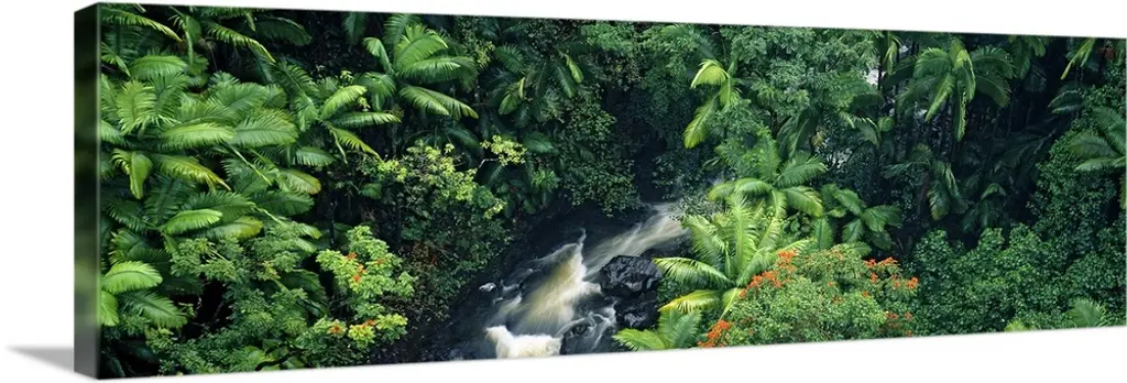 Waterfall In A Forest, Lanai, Maui, Hawaii