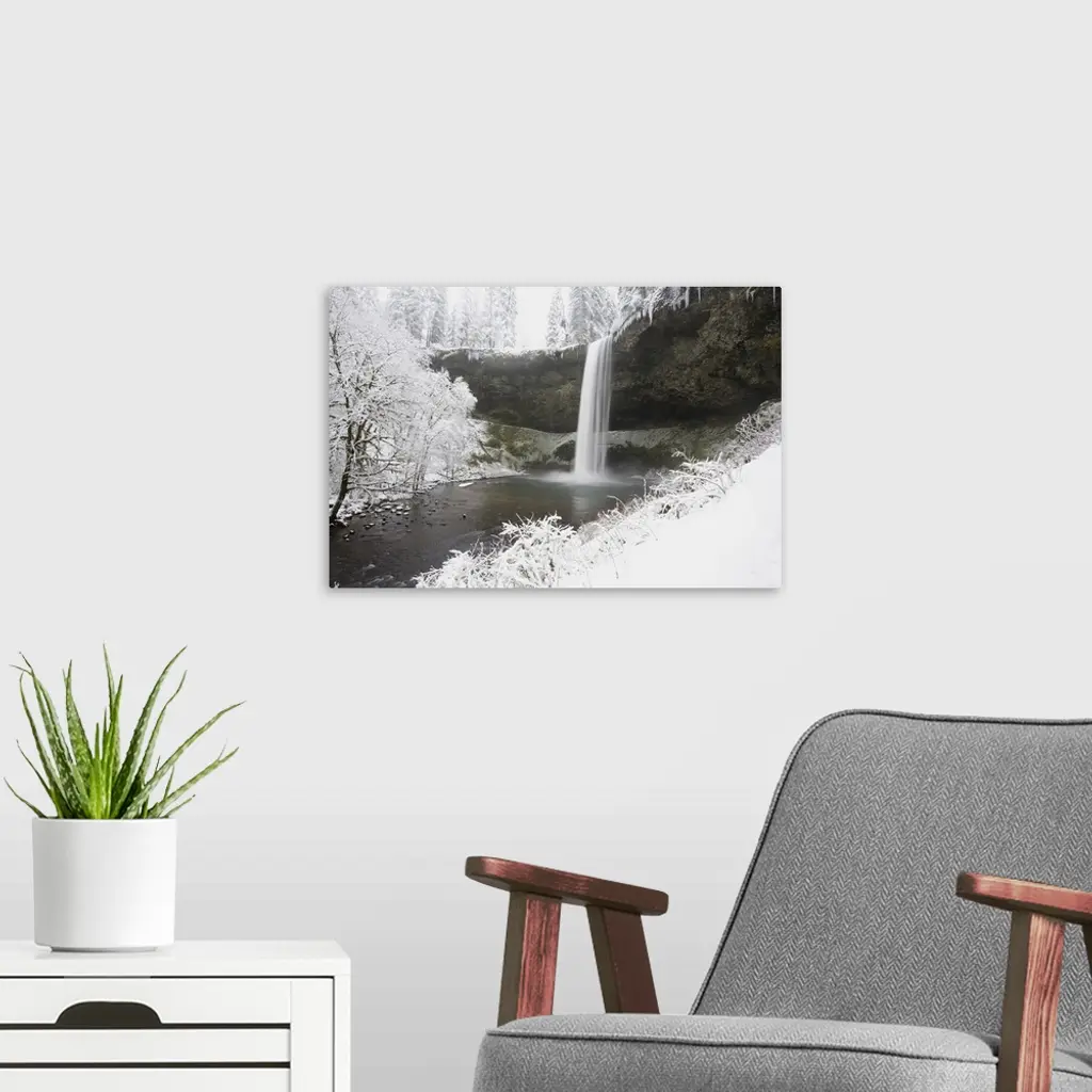 Waterfall In Winter wall art for home and office decor. Discover canvas art prints, photos, mural, big canvas art and framed wall art in GreatBigCanvas.com's varied collections.