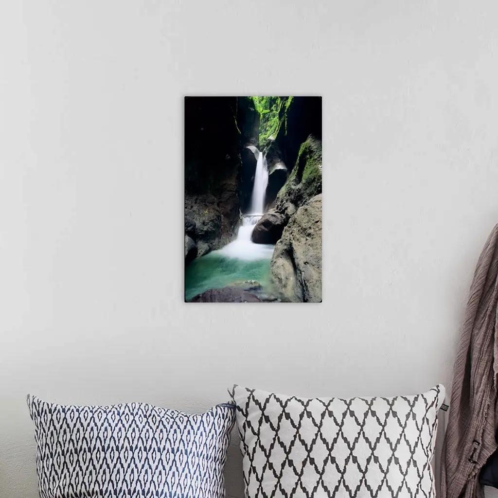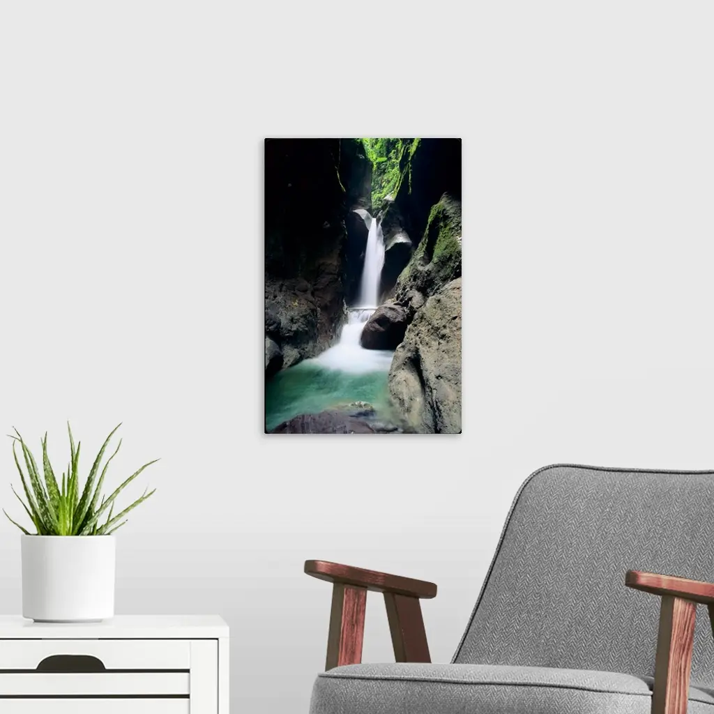 A waterfall plunges through the Gorges de la Falais on the Island of Martinique in the Caribbean Sea.