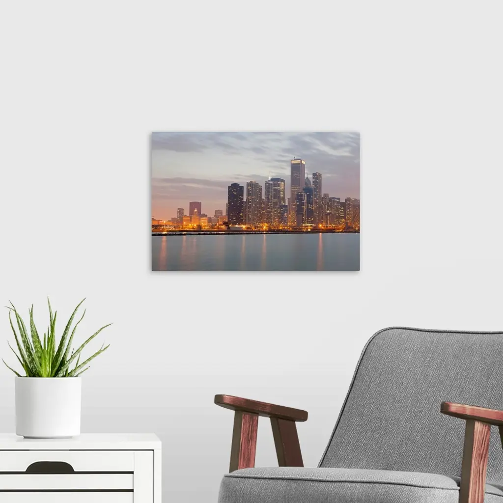 Waterfront at dusk. wall art for home and office decor. Discover canvas art prints, photos, mural, big canvas art and framed wall art in GreatBigCanvas.com's varied collections.
