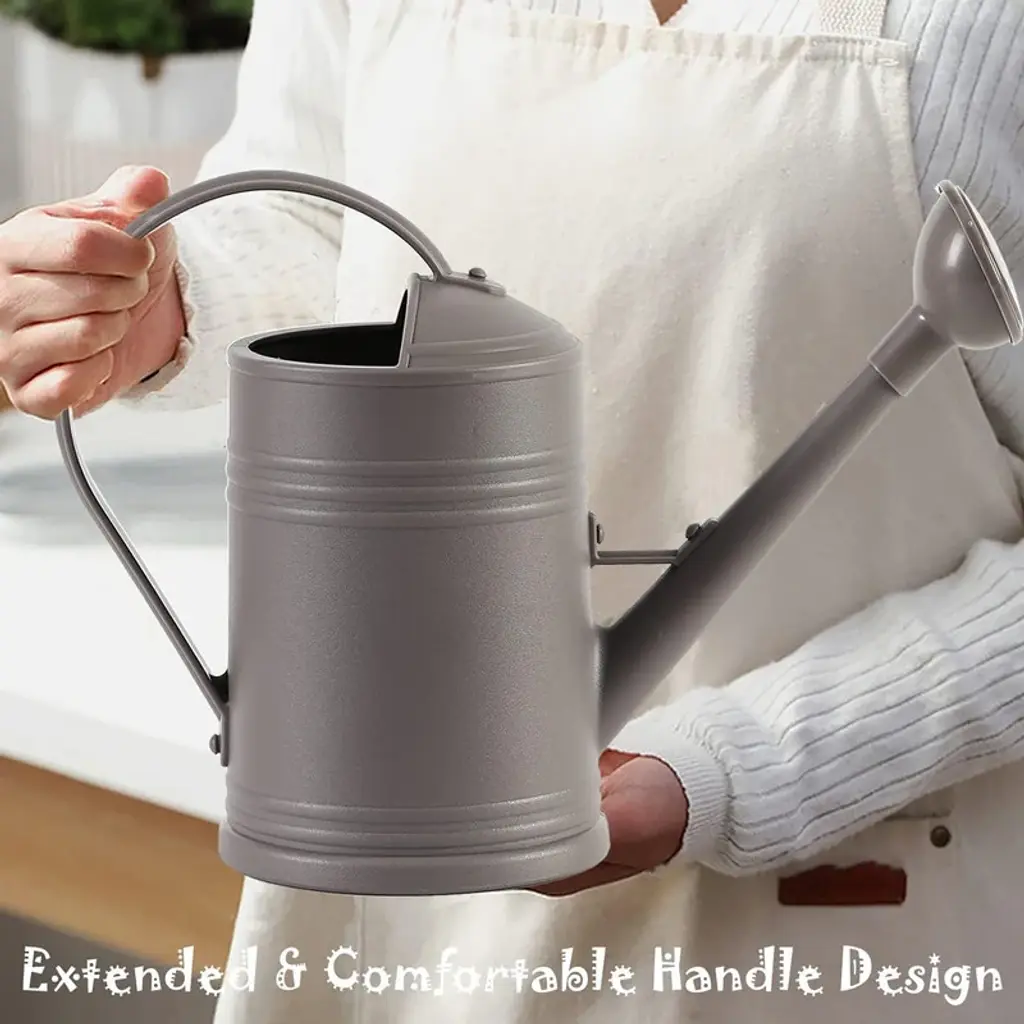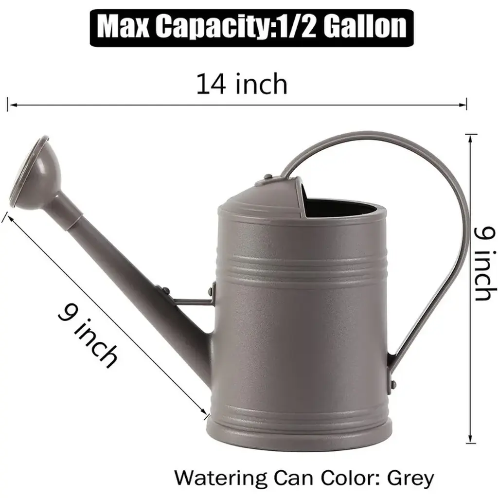 DETACHABLE CONVERTIBLE NOZZLE:Our plant watering can has a detachable shower nozzle, you can choose between a steady stream or a gentle shower. Great for both indoor and outdoor plants. LONG SPOUT WATERING CAN:Gallon cute watering can features an extra-long spout (length: about 9 inch) that makes it easy to water plants, very suitable for hard-to-reach areas. It can accurately transport water directly into the soil, so it is easy to penetrate water to the bottom of plants without splashing and wasting. MINI WATERING CAN WITH LARGE CAPACITY:The small watering can for indoor plants has a large water storage capacity of 2L (about 1/2 Gallon), which can reduce the trouble of frequent irrigation. Ergonomic handle with balanced design for easy carrying and pouring. DURABLE WELL DESIGNED WATERING CAN:This plastic plant watering can is manufactured by integral moulding sturdy shatterproof plastics. thick wall of the kettle, anti-fall and compression, not easy to age or break, long service life. It is necessity as lawn & garden watering equipment. PERFECT WATER CAPACITY FOR PATIO:Our modern small watering cans 2L can be used in watering tanks for plants, children's baths, trees, watering of gardens.