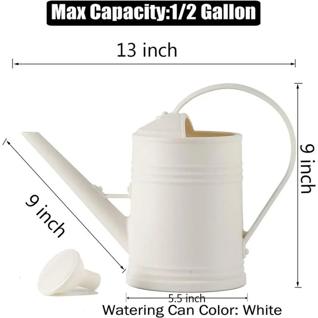 DETACHABLE CONVERTIBLE NOZZLE:Our plant watering can has a detachable shower nozzle, you can choose between a steady stream or a gentle shower. Great for both indoor and outdoor plants. LONG SPOUT WATERING CAN:Gallon cute watering can features an extra-long spout (length: about 9 inch) that makes it easy to water plants, very suitable for hard-to-reach areas. It can accurately transport water directly into the soil, so it is easy to penetrate water to the bottom of plants without splashing and wasting. MINI WATERING CAN WITH LARGE CAPACITY:The small watering can for indoor plants has a large water storage capacity of 2L (about 1/2 Gallon), which can reduce the trouble of frequent irrigation. Ergonomic handle with balanced design for easy carrying and pouring. DURABLE WELL DESIGNED WATERING CAN:This plastic plant watering can is manufactured by integral moulding sturdy shatterproof plastics. thick wall of the kettle, anti-fall and compression, not easy to age or break, long service life. It is necessity as lawn & garden watering equipment. PERFECT WATER CAPACITY FOR PATIO:Our modern small watering cans 2L can be used in watering tanks for plants, children's baths, trees, watering of gardens.