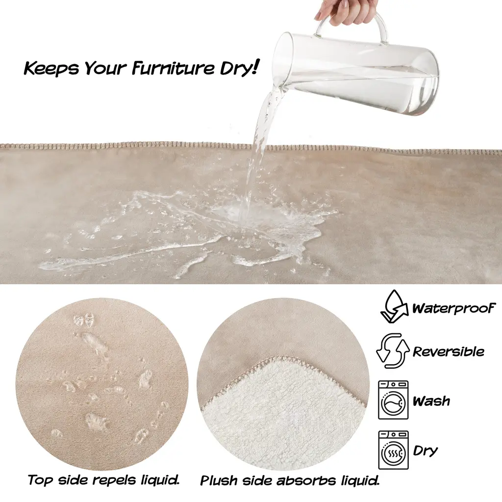 Waterproof Blanket For Dogs And Cats - Reversible Throw For Couch, Bed, Or Car - 50" X 60" - Tan
