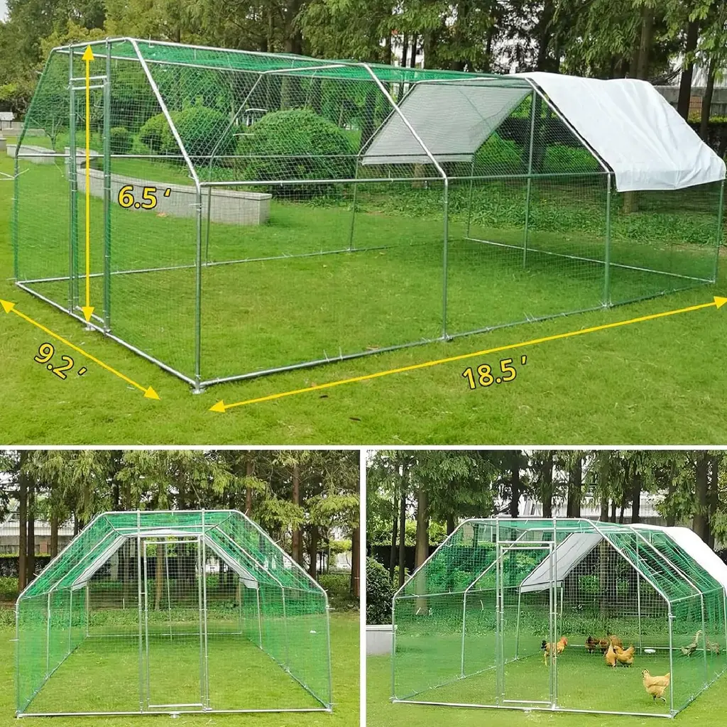 Waterproof Large Metal Chicken Coop For Outdoor Back Yard Farm - 18.5x9.2x6.5ft