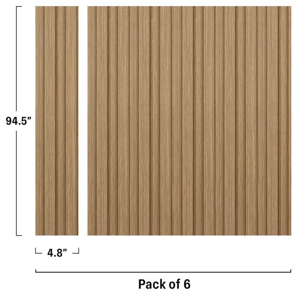 Concord Panels Design: Our wall panels offer countless possibilities to creatively design your interior and to set natural accents. In our assortment you will find a variety of wall panels, which are available in a range of wood grain finishes. Aqua Resist System: Thanks to the advanced Aqua Resist technology, the Concord Panels are 100% waterproof. You can use the slats in bathrooms, spas and other rooms with increased humidity, as they do not harbor any mildew, bacteria or termite.Materials: Panels made from recyclable polystyrene PVC. The beautiful design of our products goes hand in hand with care for the environment. Easy to install: The installation of the panels is an easy and simple process. Trim the panels to the required size and use any adhesive suitable for wooden wall panels. The panels can also be nailed or screwed to the walls. Comes in a Pack of 6 Covers 18.9 Square Feet - Each panel is 3.15 square feet.