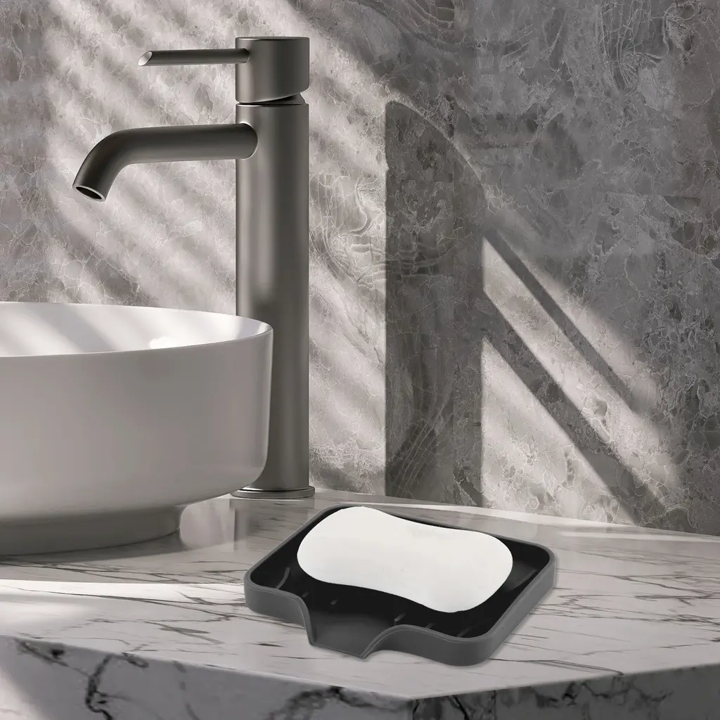 Feature:Soap dish, easy to install, suitable for all kinds of soap. A great helper for bathroom or kitchen storage, it keeps soap clean while making the whole environment look tidier.This shower suction cup soap holder has many integrated drain holes to prevent water accumulation and keep soap dry, for easy cleaning.Made of good-quality and durable silicone. No screws, no glue, no complicated tools or steps required, one click to complete the installation.Specification:Color: BlackMaterial: SiliconeSize: 25.5x14x2cm / 10.04"x5.51"x0.79"(L*W*H)Package Included:1 Pc Soap Dish