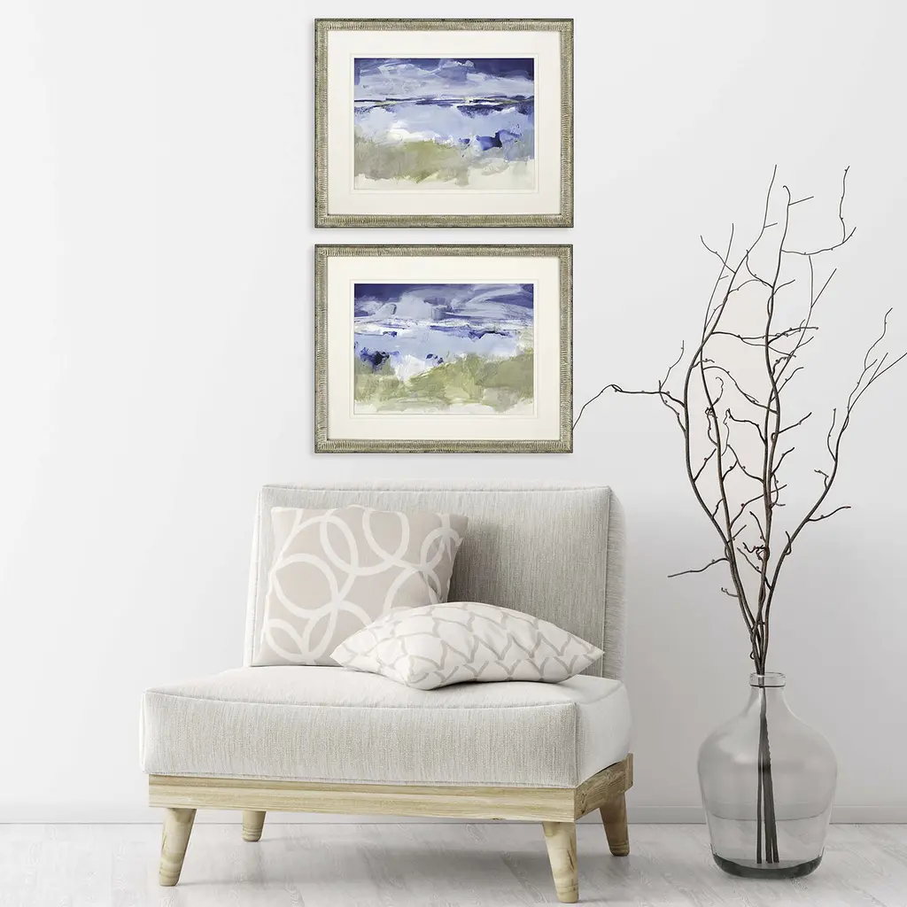 Waterside Blue And Green And White And Gray Framed Art