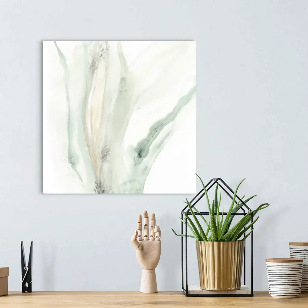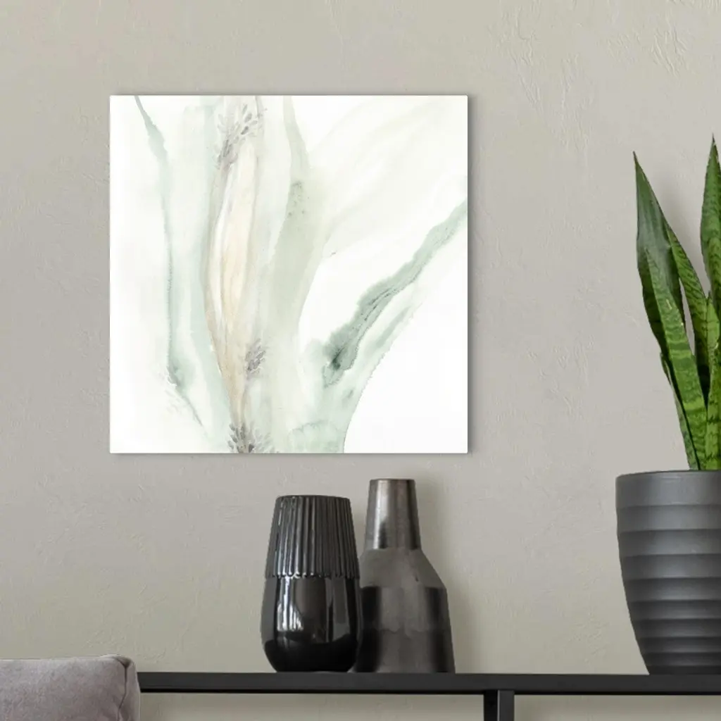Pastel abstract in pale sweeping teal and tan tones.