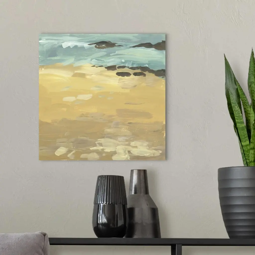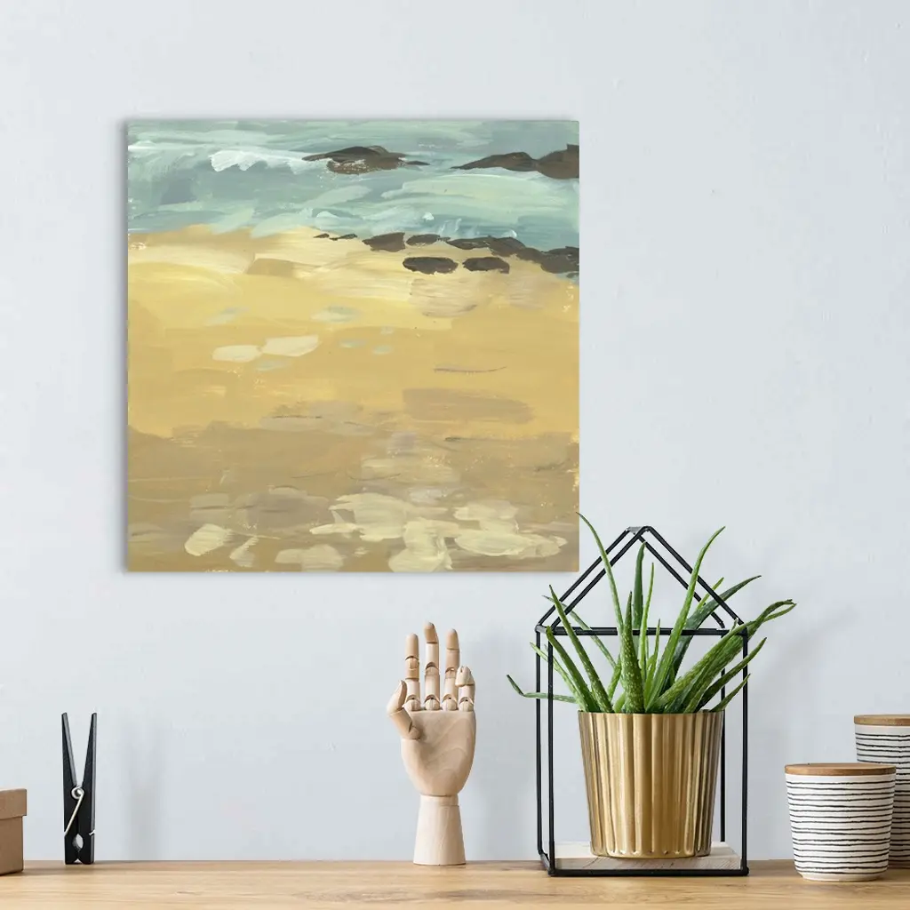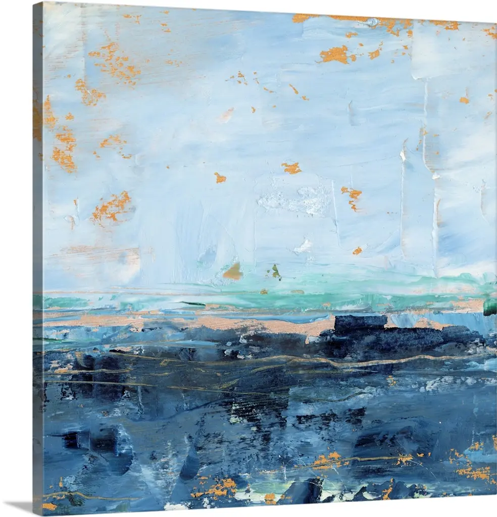Contemporary abstract seascape in teal and brown.