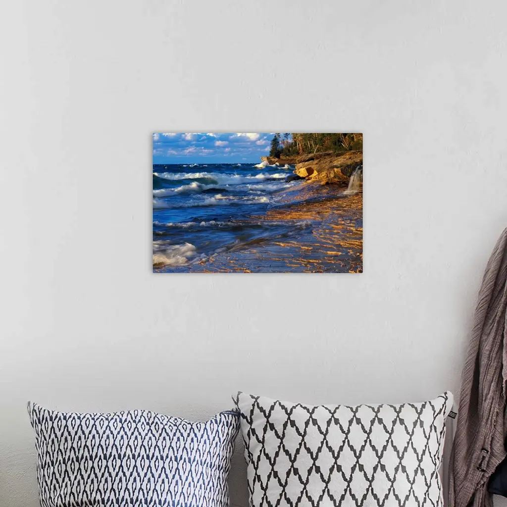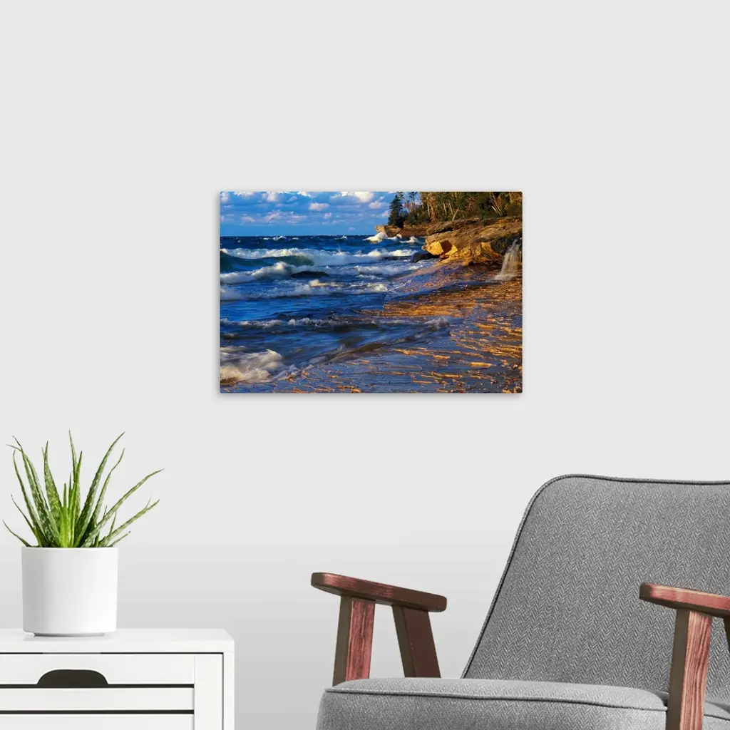 Waves Along Lake Superior Shoreline, Sunset Light, Miners Beach, Michigan
