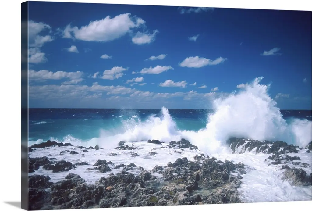 Waves breaking on the coast, East End, Anguilla wall art for home and office decor. Discover canvas art prints, photos, mural, big canvas art and framed wall art in GreatBigCanvas.com's varied collections.