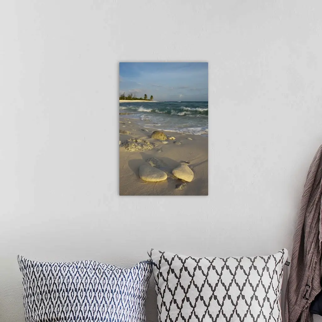 Waves crashing on crushed coral and coral fossils on the beaches of Punta Arena, Mona Island, Puerto Rico