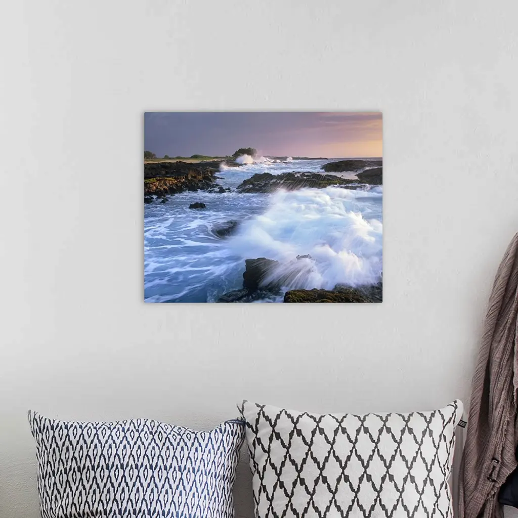 Waves crashing on rocky shore, Wawaloli Beach, Big Island, Hawaii wall art for home and office decor. Discover canvas art prints, photos, mural, big canvas art and framed wall art in GreatBigCanvas.com's varied collections.