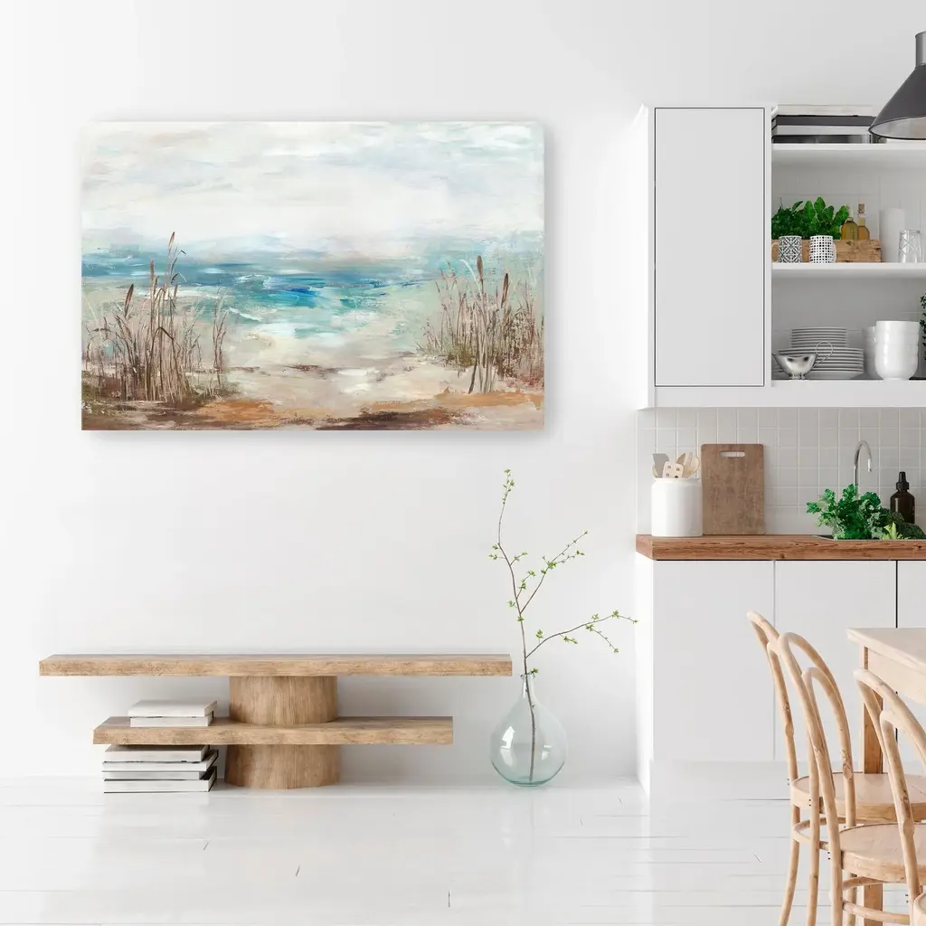 A classic and calming design, this coastal print will look good on any wall. Hang it above your fireplace to make your space feel more inviting. Our Gallery Wrap Canvas Prints are proudly assembled with high quality materials in California, USA. Each piece is printed on a thick, archival grade canvas using Giclee technology. It is then hand-stretched by our experienced artisans over solid pine bars, which will not warp over time. The final product is a piece personally crafted for you to confidently display on your wall. Care and Assembly: Ensure that the location of your piece has little to no exposure to heat, sunlight, and moisture. Wipe clean, only if needed. Each piece includes a sawtooth hanger to hang on your wall horizontally.