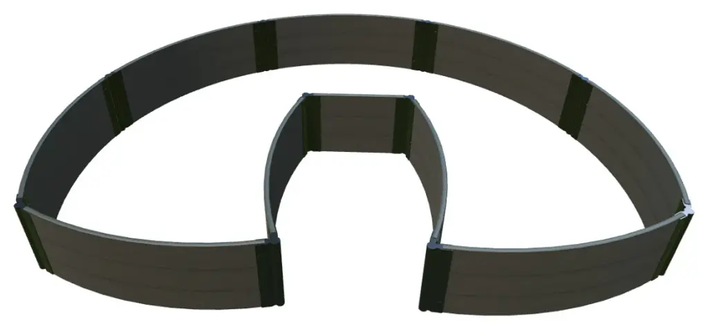 Our �PEPPERMINT CREAM� large circular level, raised garden bed features a Half Moon Raised Bed insert. With easy tool-free assembly, easy to manage, it is a triumph of form and functionality with 80 square feet of growing area for flowers, herbs, veggies, fruits, heathers or lavender and affords visitors a great view of the garden �no matter where they are standing. Stunning as a flower garden and incredibly functional as a veggie garden you can plant annuals and perennials with vegetables. Veggies including artichoke, arugula, asparagus, lettuce, pole beans, beets, carrots and cabbage will all thrive in this raised garden bed, together with luscious tomatoes, fragrant herbs and flowers. Plant luscious tomatoes, fragrant herbs and flowers in the shallower levels. For easier harvesting, leave sufficient space on all sides making it super-easy to run out and pick veggies for a salad.Tool-free snap-lock joints make it simple to install. Your kit comes with everything you need other than soil and plants. Each modular kit includes food safe, curved composite boards and snap-lock stacking brackets. The insulating open-channel boards trap air, providing insulation to your soil, keeping soil warmer in the spring and fall, and cooler in the summer to extend the growing period.