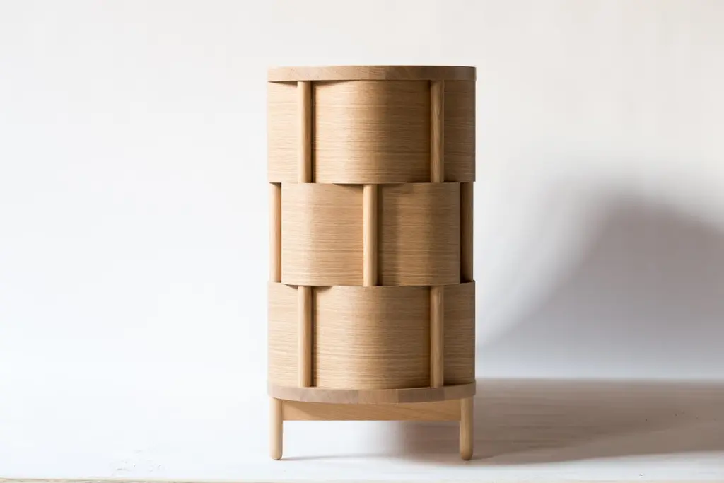 Weave Double sided Credenza, made of solid birch wood and veneér. Modern yet classic, bold yet modest the Weave serves as a great example of Scandinavian contemporary design. Designed by Lukas Dahlén.The minimal yet expressive credenza Weave is made of solid birch wood and birch veneér. Inspired by the most common kind of wood and weed weaving the Weave sideboard represents an enlarged version of the technique of weaving something soft around a more stable structure. The top and bottom plane of the credenza is held together by sticks kept together like a Windsor chair. Since first shown in Milan 2012, salone satellite, it has received a lot of attention worldwide. The credenza is made in different standard sizes and finishes. Custom size and finish is possible upon request.