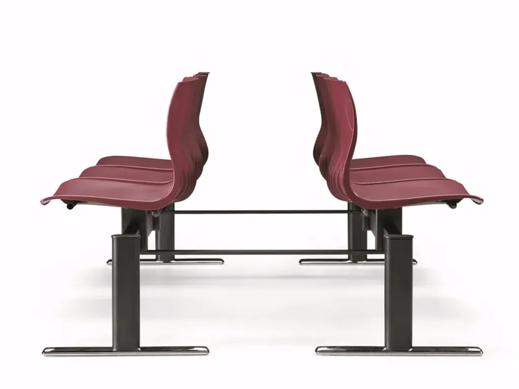 Webby 336 B3 - Freestanding plastic beam seating.Webby - Beam seatings with nylon shell available in various colors.Modular system with 2 or more places.Metal structure with "T" legs and adjustable glides.For versions with MDF table black or grey, it can be mounted as desired in the center or left or right.Ideal for: waiting rooms, conference rooms, hospitals, clinics and schools.Optional: Front panel padded and upholstered seat or seat and back, wall brackets spacers and/or to make islands, arms attached to the bar or sitting, arms with anti-panic writing tablet, left tablet, big size tablet for PC.