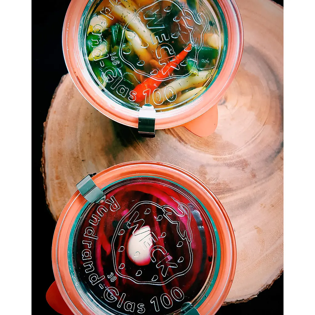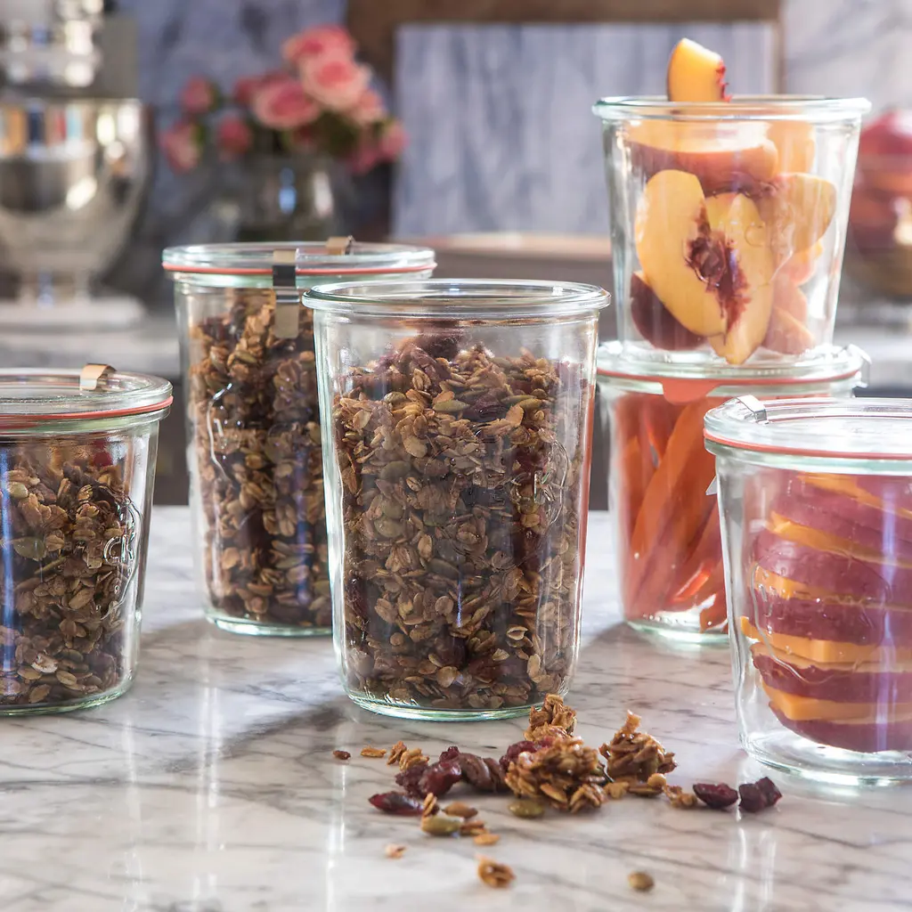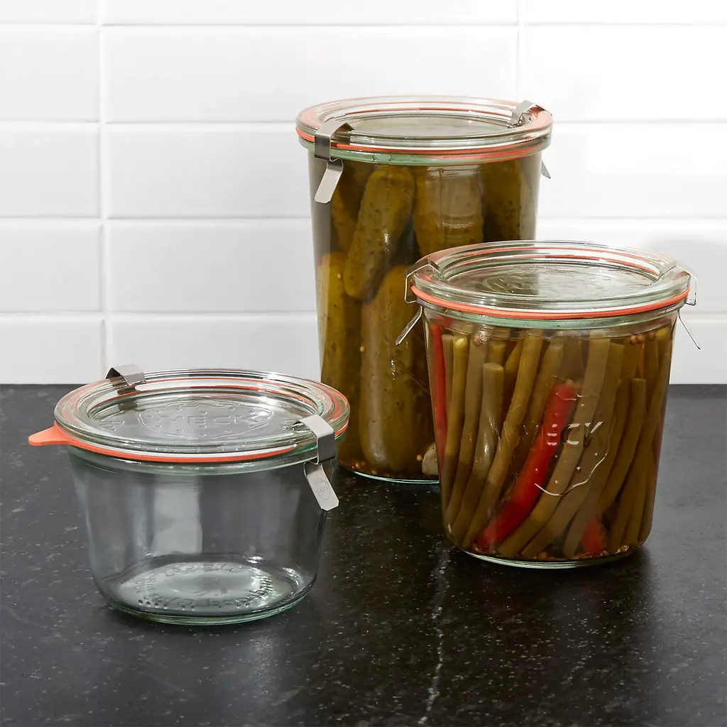 With the rise in home canning and preserving, it's only natural we'd revisit these German classics—keeping it fresh since 1900. Unlike other canning jars, Wecks feature an open tapered shape that's easier to fill and empty, rust-free glass lids (no can opener required), and sealing gaskets that are easy to check at a glance. Jars stack for convenient storage.
