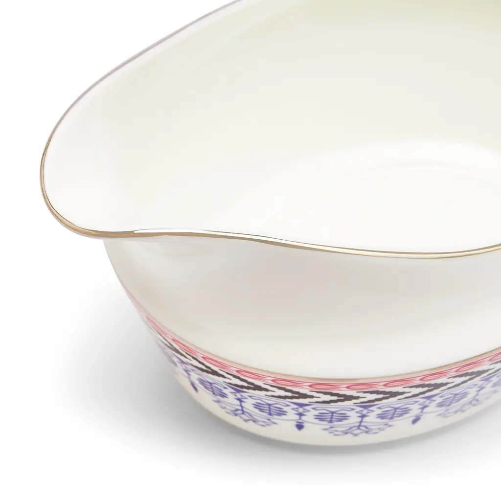 The wonder of the holiday season is sharing a holiday meal with our nearest and dearest. This delightful bone china sauce boat is waiting to be generously filled and to do its part to look glorious for the holiday table! It's delightful saucer will protect the table which is so handy with so much Festive food to share around. The joyful Festive pattern has an outer beaded border inspired by our archival Tonquin pattern. Presented in a signature Wedgwood signature blue box.