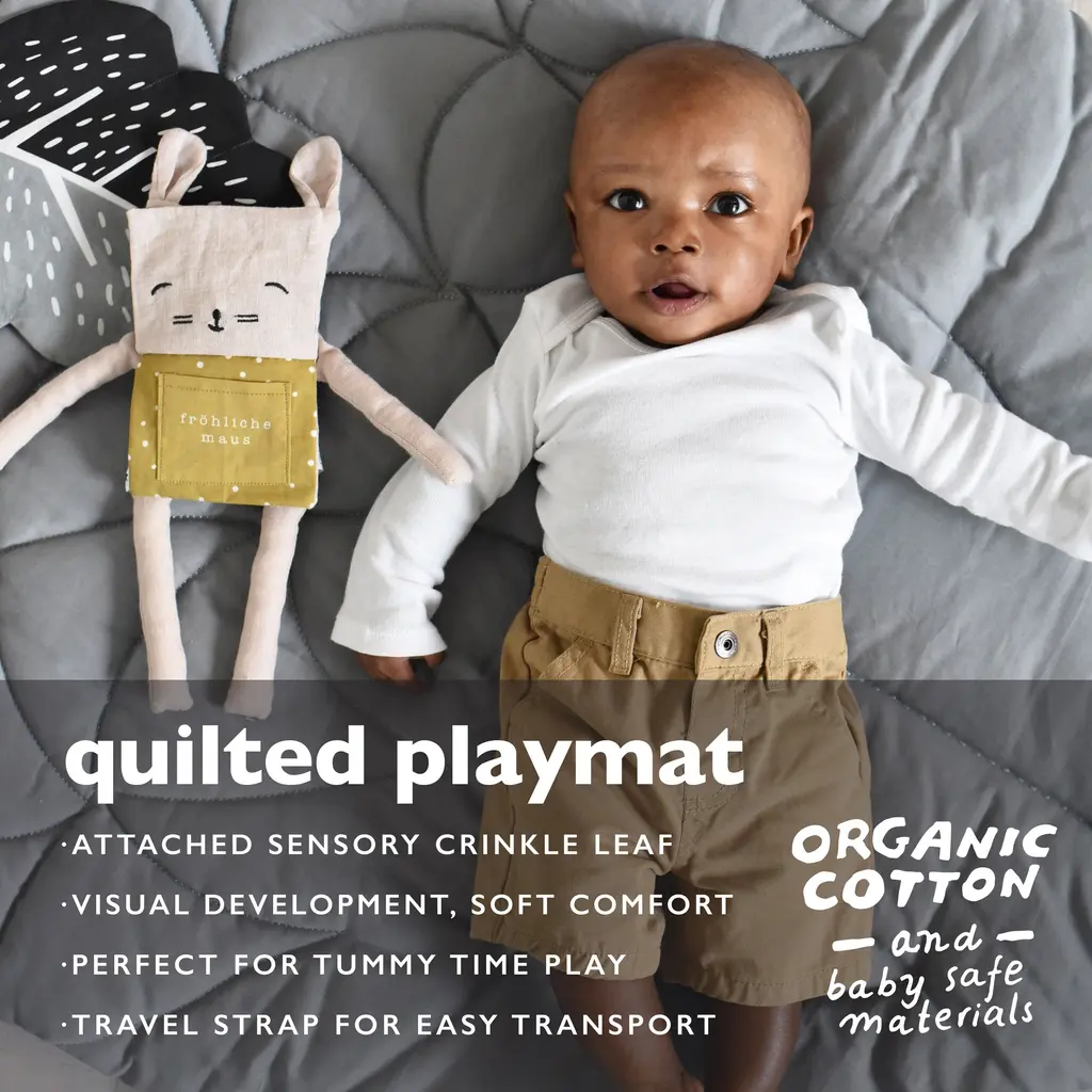 Designed With Care: Wee Gallery's woodland themed infant playmat features a black and white acorn shape on one side and a soothing neutral gray fabric on the other. Measuring 35 x 45 inches, our play mat creates the perfect large area for cushioned play and baby exploration. Developmental Support for Babies: Featuring a reversible two-sided pattern with high contrast graphics, this floor mat with attached crinkle paper toy leaf keeps your little one interested and visually stimulated. The ideal playtime setting for tummy time and baby development! The Perfect Gift: Our popular playtime floor mats make the perfect baby shower gift or first birthday present for your child or grandchild. These soft playmats for babies also come with a sturdy reusable carry strap for easy storage and gifting. The neutral palette and natural texture fits in with any decor style. Safe for Baby Ethically made in India from cotton and Oeko-tex polyester padding with quilted stitching to make it washable. The extra soft cushioning supports regular use for tummytime, reading, and relaxation. The Wee Gallery Story: We've built a fun and creative world of animals and nature themes for girls and boys, thoughtfully designed to entertain and educate. Our sustainable unisex toys for babies are created to stimulate during each stage of child development, and encourage learning through play.
