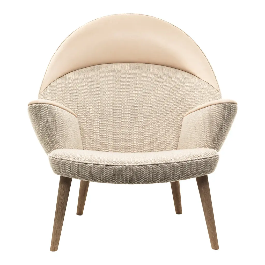 The Upholstered Peacock is, as the name implies, an upholstered interpretation of the pp550 Peacock Chair from 1947, one of Wegner's all time classics and one of his personally most beloved designs. In the Upholstered Peacock Wegner has repeated the arch from the original version and then covered the construction with fabric making a softer chair. The neck and the armrests allow the seated to indulge in the sensible touch of leather, right where it matters the most. The elegantly resolved use of leather and fabric in combination is unique, and the way in which these two contradicting materials are so well balanced is a strong example of Wegner's extraordinary sense for the material. pp521 is upholstered using only natural materials like flax fibers, cotton, jute straps, palm leaves and horsehair. This is the only way to ensure that this kind of easy chair will be worn in rather than worn out with time. NOTE: Armrests and neck cushion available in all PP Mobler Leathers. Contact us to order. This item is made to order by some of the world's best furniture craftsmen using materials that are required to meet PP Mobler's exacting specifications. As such, lead times can vary and are subject to change.