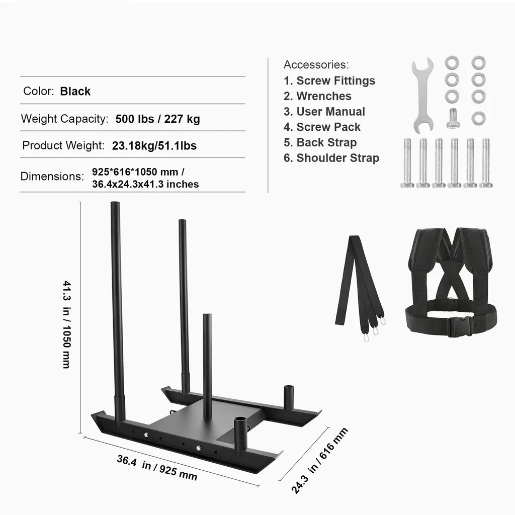 Weight Training Sled For Power Strength Resistance And Speed Workouts - 36.4 X 24.3 X 41.3 Inches - Black